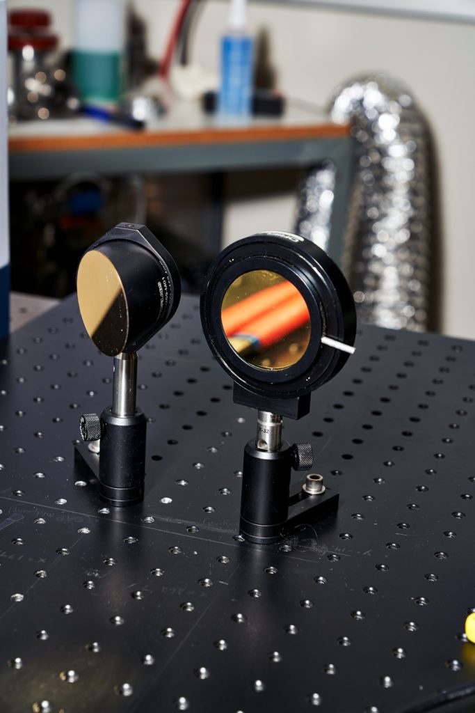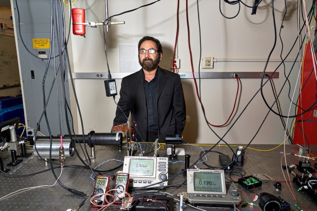 В лабораториях Любина в Калифорнийском университете в Санта-Барбаре есть загромождённый склад. Внутри витает дух экспериментальной физики: гигантские катушки с оптоволокном, стойки с осциллографами, ящики для инструментов, печатные платы. Шкафчик для растворителей здесь, шкафчик для закусок там.