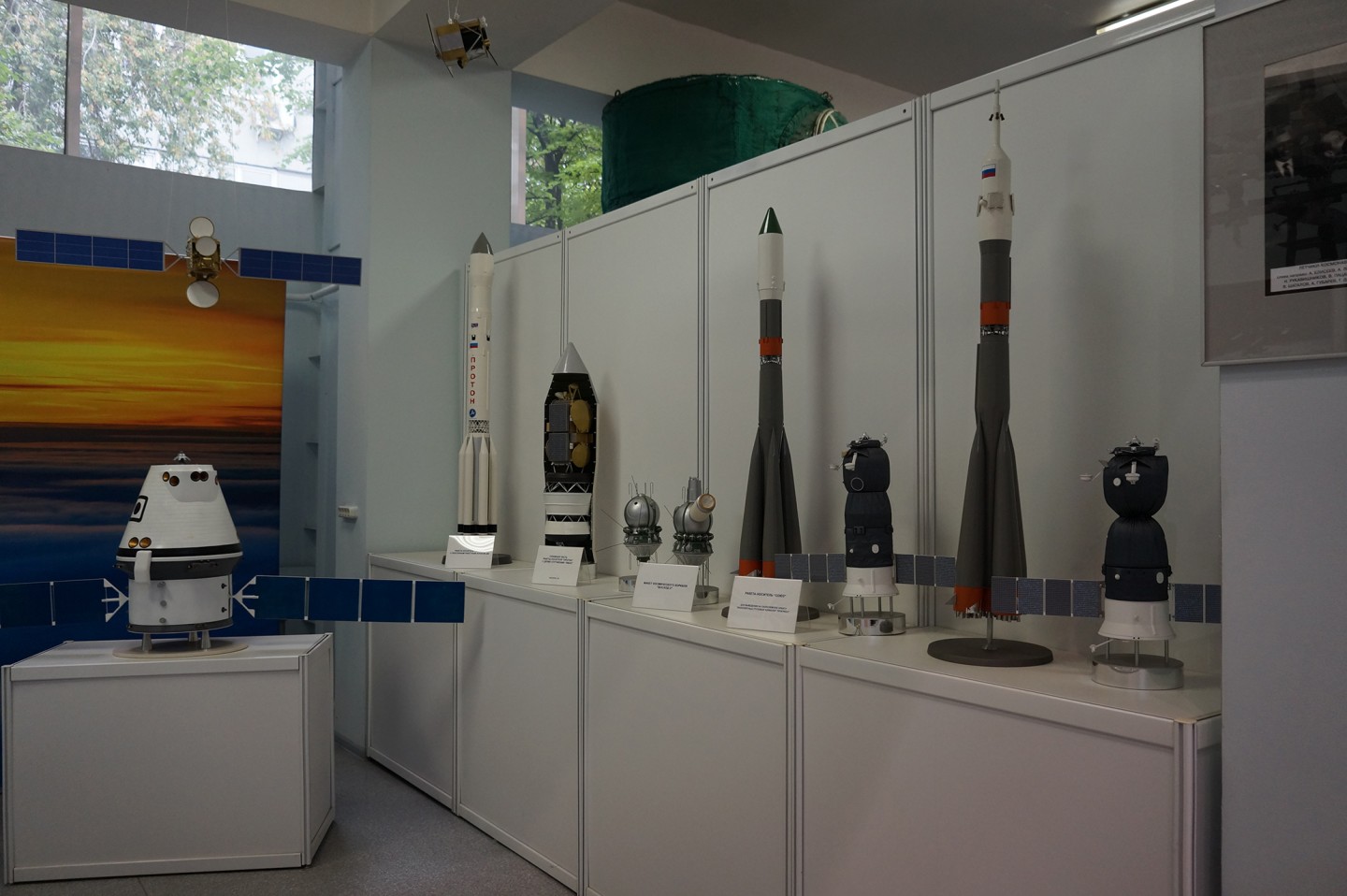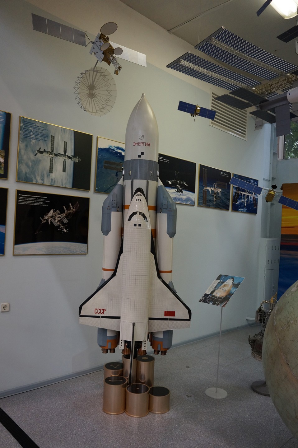 Еще одна, совсем небольшая часть экспозиции, посвящена более современной истории советской и российской космонавтики. К сожалению, здесь совсем нет интересных экспонатов, только фотографии и модели в небольшом масштабе.