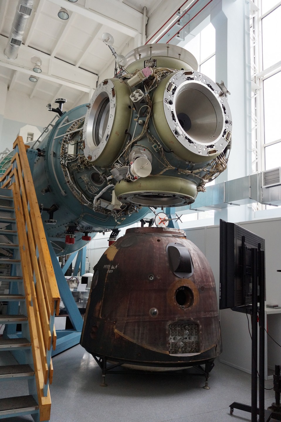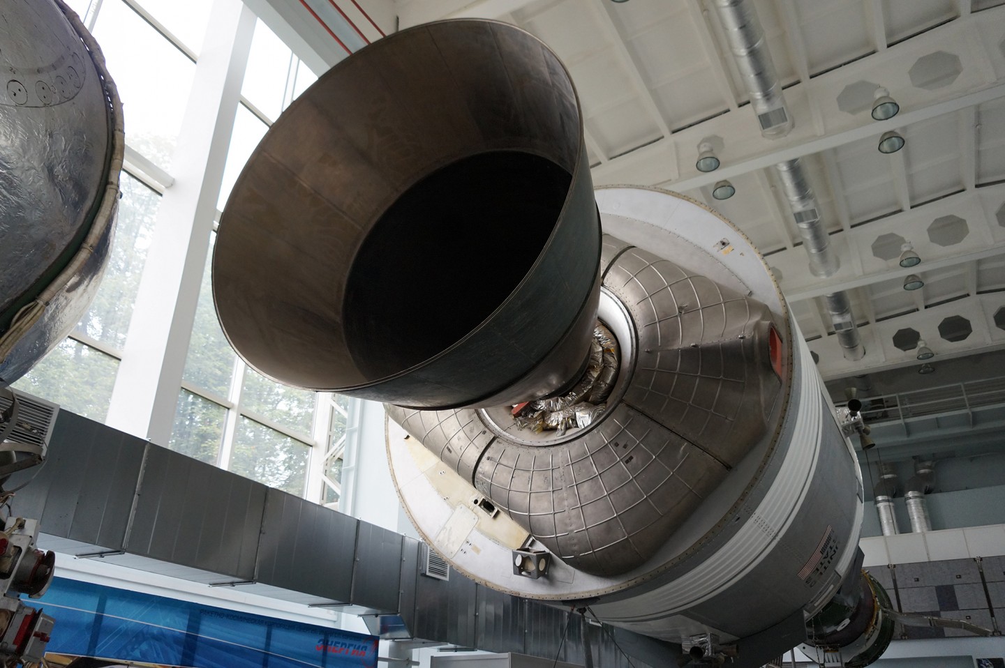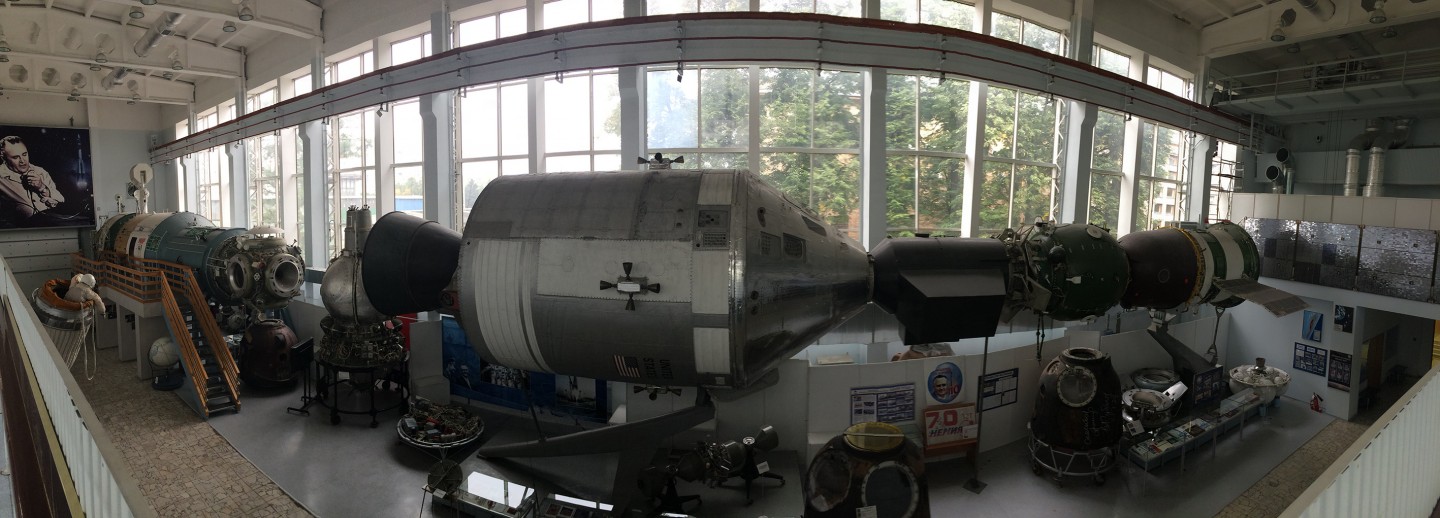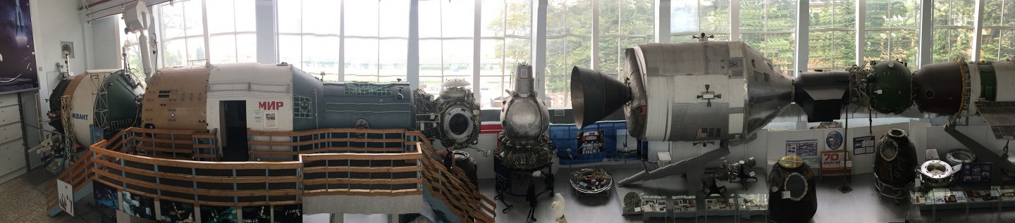 Продолжаем нашу экскурсию по музею РКК “Энергия”! В этой части экспозиции – самые масштабные экспонаты: технологический макет базового блока станции “Мир” и полномасштабный макет миссии “Союз-Apollo”.