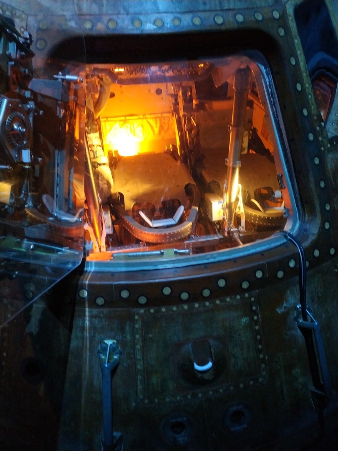 Поруч був спрощений макет, на якому діти могли потренуватись зістикуватись з міжнародною космічною станцію. Трохи далі був габаритний макет капсули Аполона, в який можна залізти і спробувати відчути як в такому обмеженому просторі можна просидіти декілька днів (дітям сподобалось). Внизу стояв макет якоїсь капсули вже для дорослих, там дінамики і монітори, можно було “симулювати відчуття” але нас вже чекали і ми не встигли почекати в черзі до цього атракціону