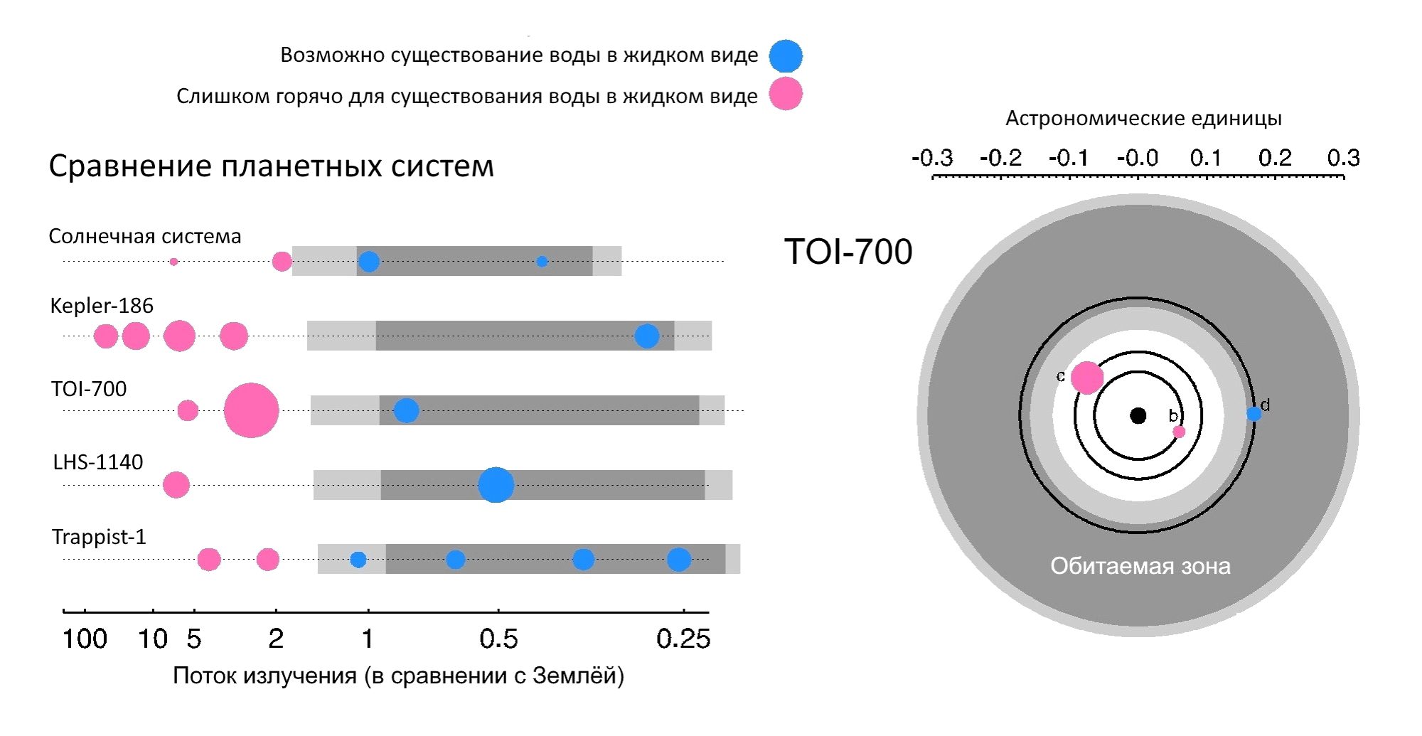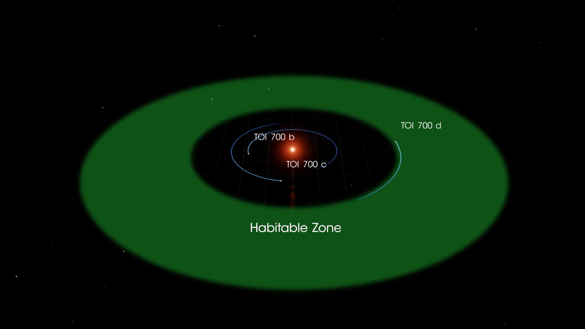 Самым интересным миром системы является третья по удалённости планета. TOI 700 d примерно на 20% больше Земли и находится в обитаемой зоне своей звезды, совершая один оборот вокруг светила за 37 дней. Она получает 86% той энергии, что наша планета получает от Солнца. Как полагают исследователи, все планеты системы захвачены приливными силами материнской звезды – это значит, что они всегда обращены к ней одной стороной.