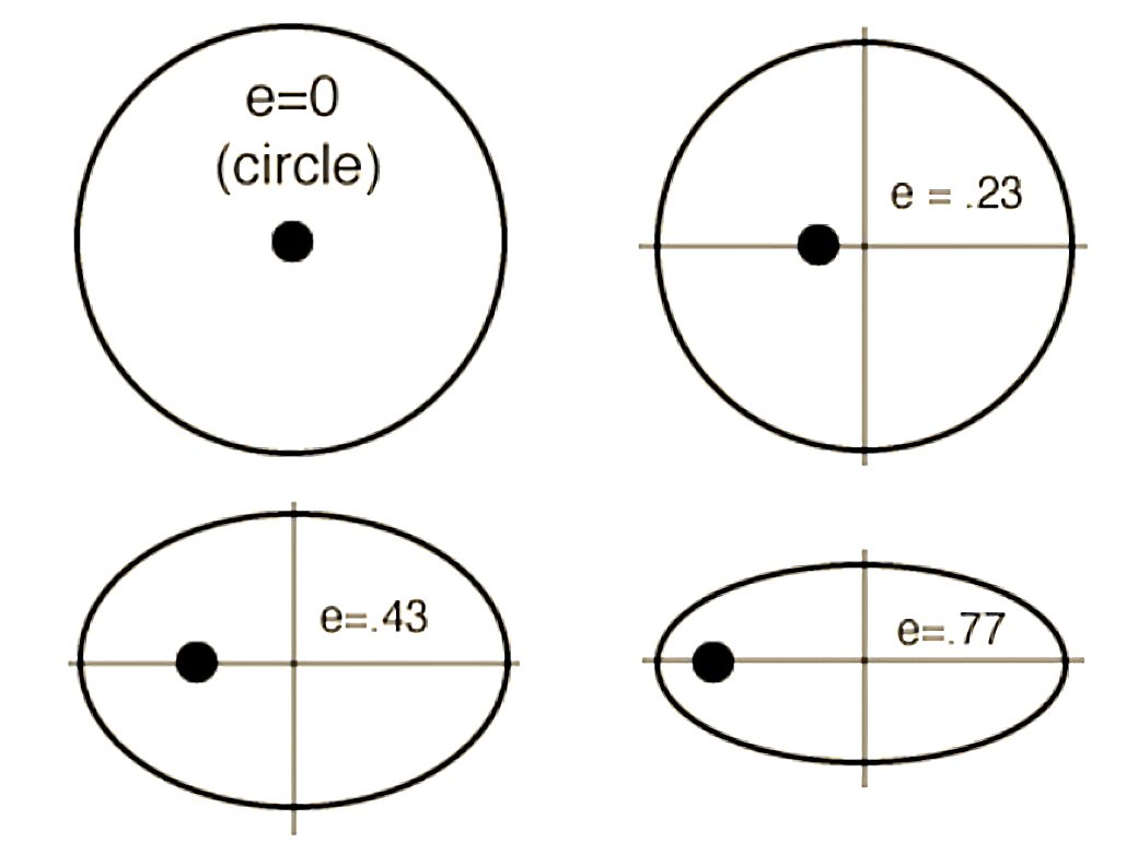 Разница в эксцентриситетах орбит в этих двух группах поразительна. В группе слева у всех планет практически круговые орбиты, тогда как в группе справа форма орбит различна, но склоняется к эксцентричной. Такая непохожесть двух групп вызвана различиями в большой полуоси орбит планет.