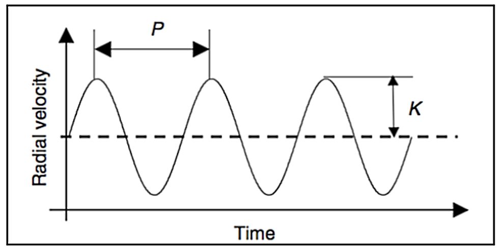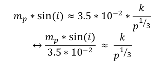 Уравнение ниже используется в расчётах методом радиальных скоростей; оно показывает соотношения амплитуды, орбитального периода (и большой полуоси, соответственно):