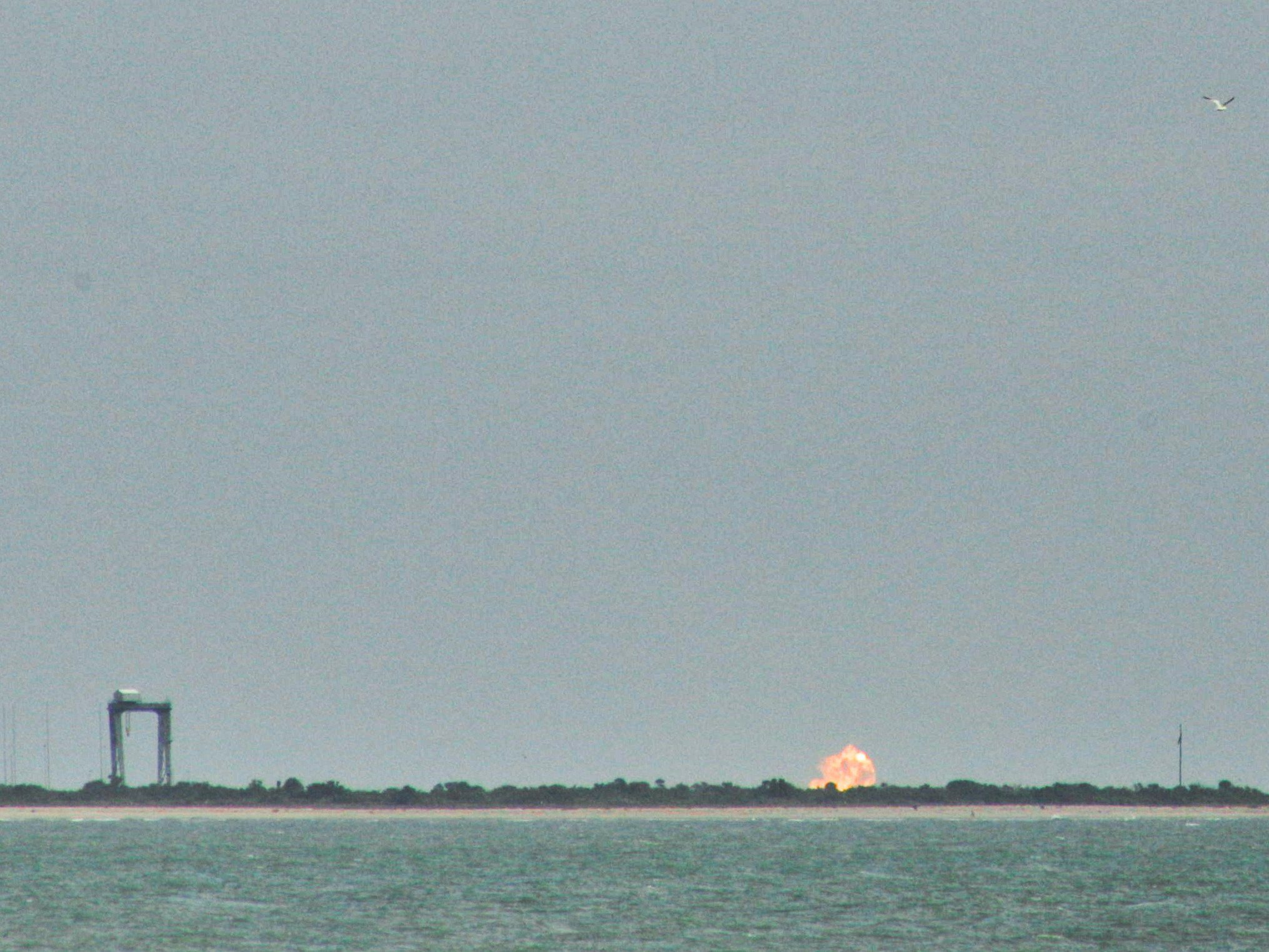 Интересно, что баки второй ступени оказались достаточно прочными, чтобы пережить взрыв первой ступени. И красиво 2-я отлетала, дымя, от огненного шара 1-ой. Это ещё раз говорит о том, что даже при взрыве первой ступени у Дрэгона будет время запустить движки САС и отлететь от этого взрыва.