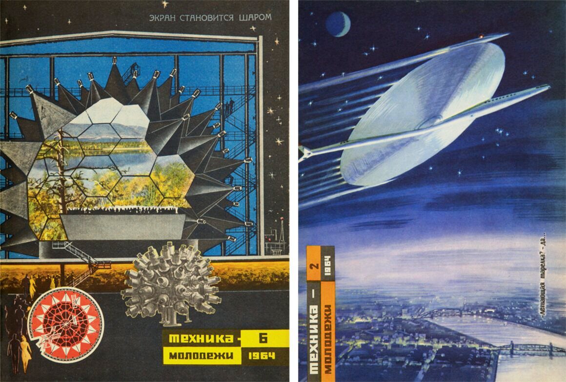После того, как СССР и США совершили свои первые космические полеты, проекты журналов были немедленно заполнены изображениями человека в космосе. Космонавты швартовались, смотрели сквозь иллюминаторы на просторы космоса, гуляли по городам и командным центрам на других планетах. Масштабы фантазий стали совершенно другими. Если в 1950-х люди думали о том, какие технические инструменты позволят им освоить просторы Вселенной, то лишь спустя десятилетие художники уже проектировали звездные города, теплицы и огромные станции, где люди могли бы жить годами. Хрущевская оттепель нашла отражение не только в содержании иллюстраций, но и в палитре. Стиль стал ярким и футуристическим, полным ярких красок, и другие планеты казались дружелюбными, гостеприимными мирами. Начался новый авангардный цикл.