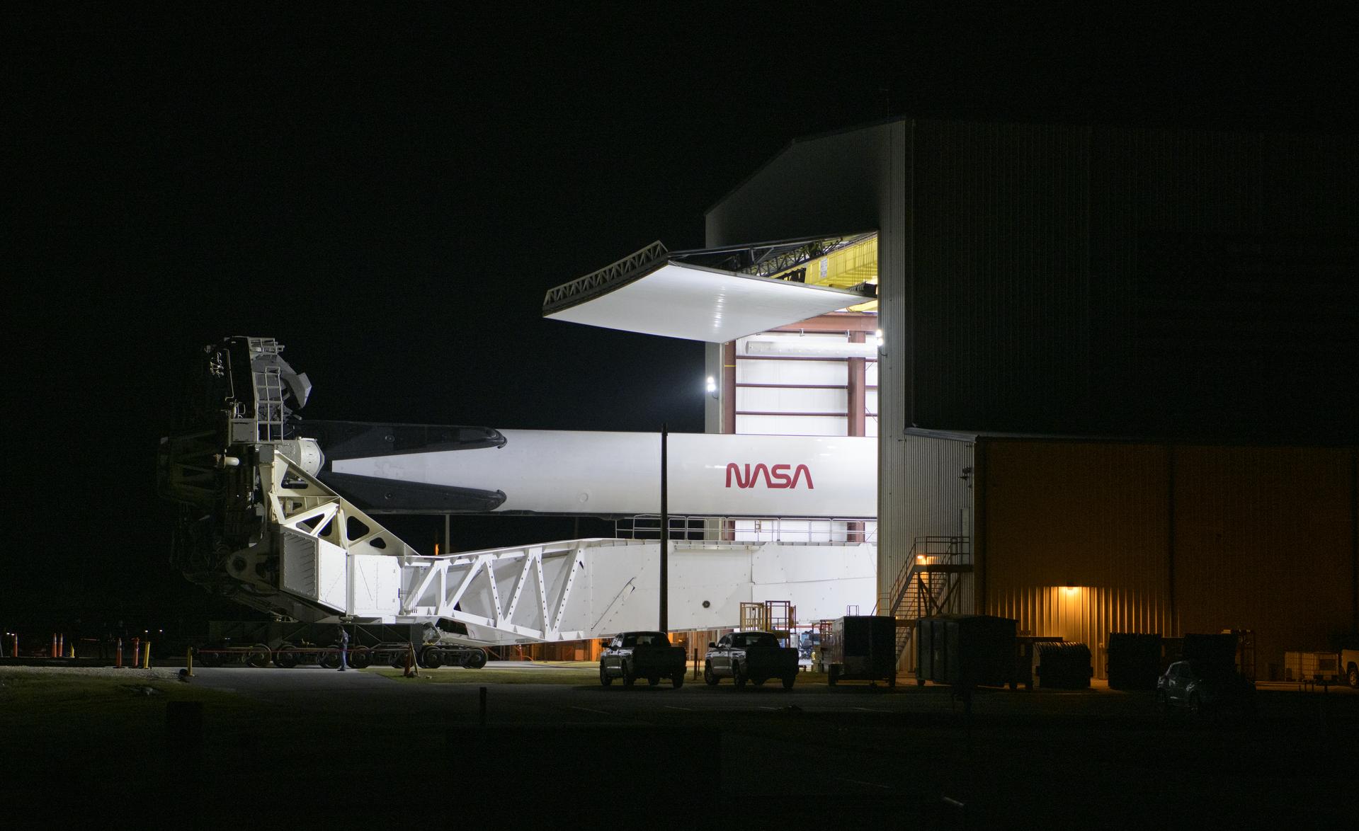 В этот раз на первую ступень нанесены два логотипа NASA: не только привычная нам синяя “тефтелька”, а ещё и лаконичный футуристичный логотип, который американцы ласково называют “червяком”. Они же красуются рядом на автомобилях Тесла, которые доставляют астронавтов на стартовую площадку, и даже на самих полётных скафандрах.