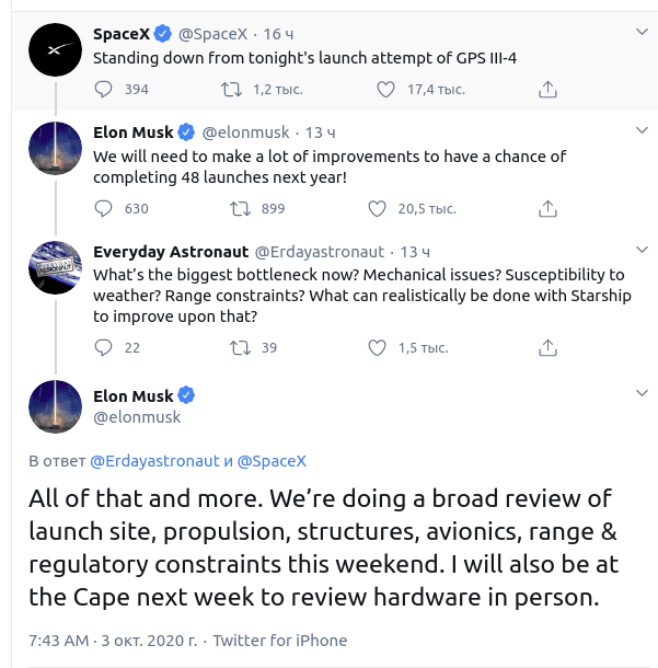 Elon Musk лично примет участие в анализе ситуации с переносами пусков Falcon 9 Vitalii Lipovetskii Жов 03, 2020 SpaceXЗапускиНовини 2119 16 Share Telegram Twitter/X Facebook WhatsApp Copy Link