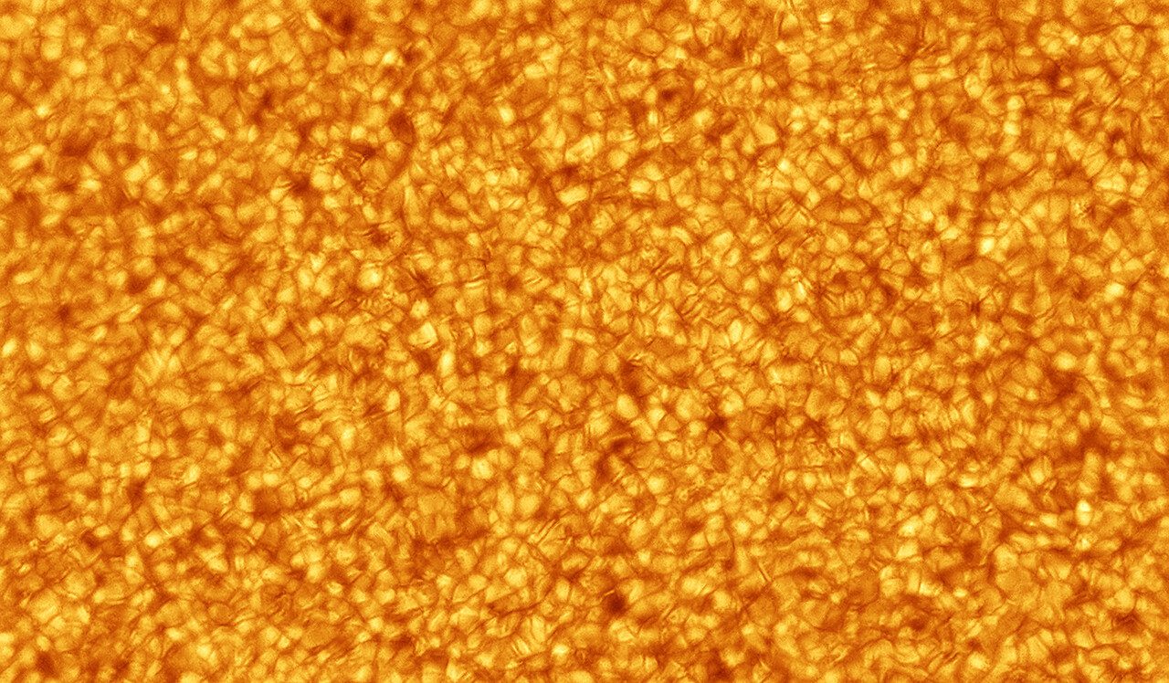 Sun: ZWO ASI120MC-S camera, Thousand Oaks Optical solar filter, f/5 lens, 631 x 17.2-millisecond exposures