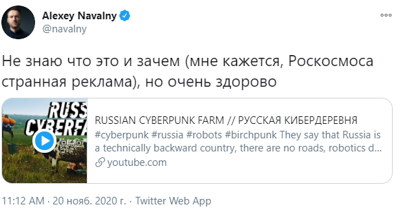 Обратите внимание на первые кадры, QR-code на корове : “https://www.twitter.com/rogozin”