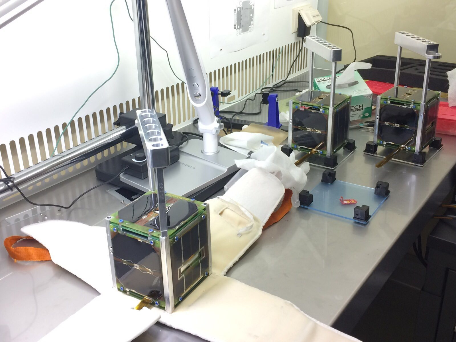 Сейчас в офисе компании лежит сразу кучка спутников для различных заказчиков. Вот эти два спутника – для МИЭМ НИУ ВШЭ.