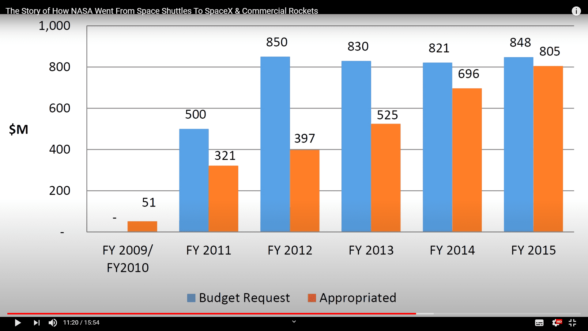 Так, мелкая заметка, в хистори. Смотрел видео от Скотта Менли и попал на нужные графики, которые ранее не встречал, касательно финансирования SpaceX времен программы COTS