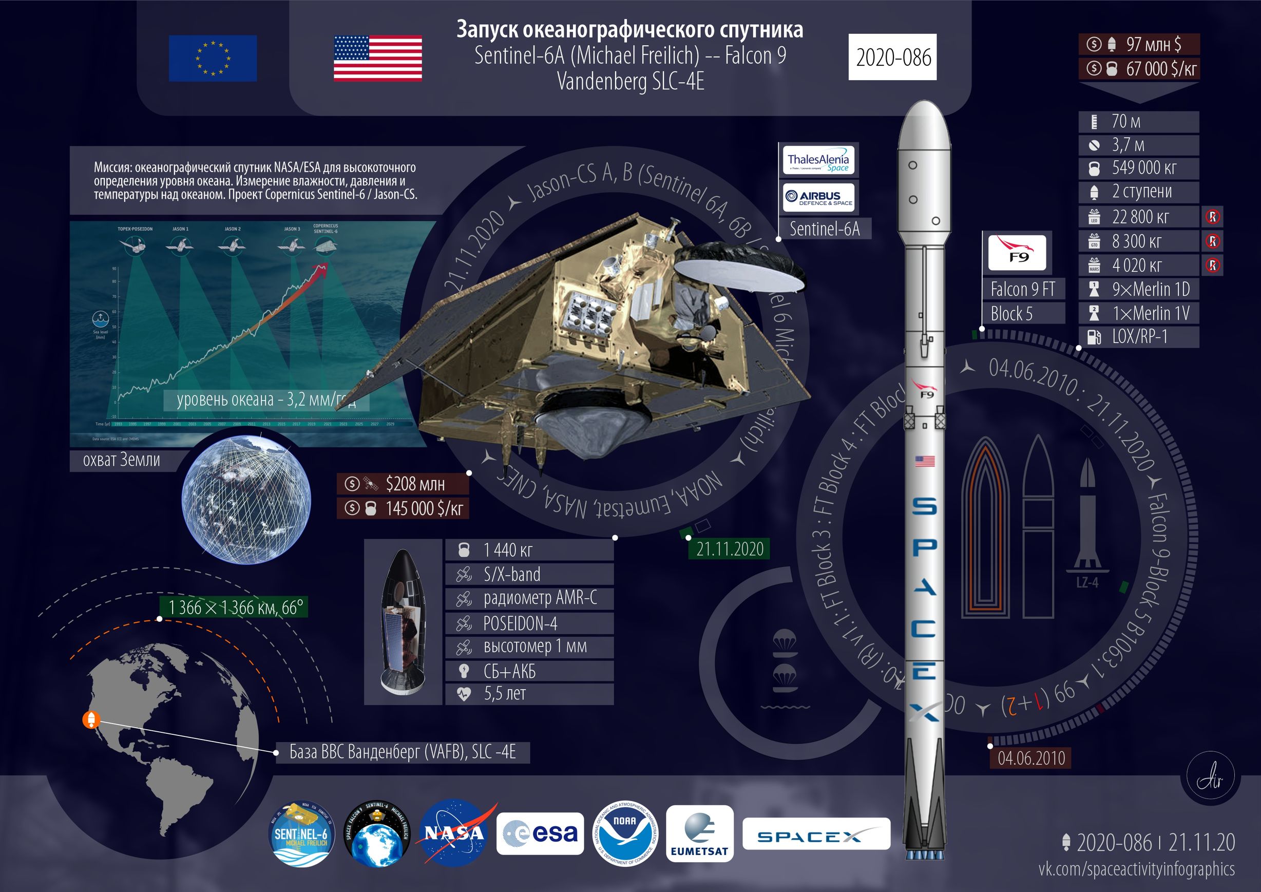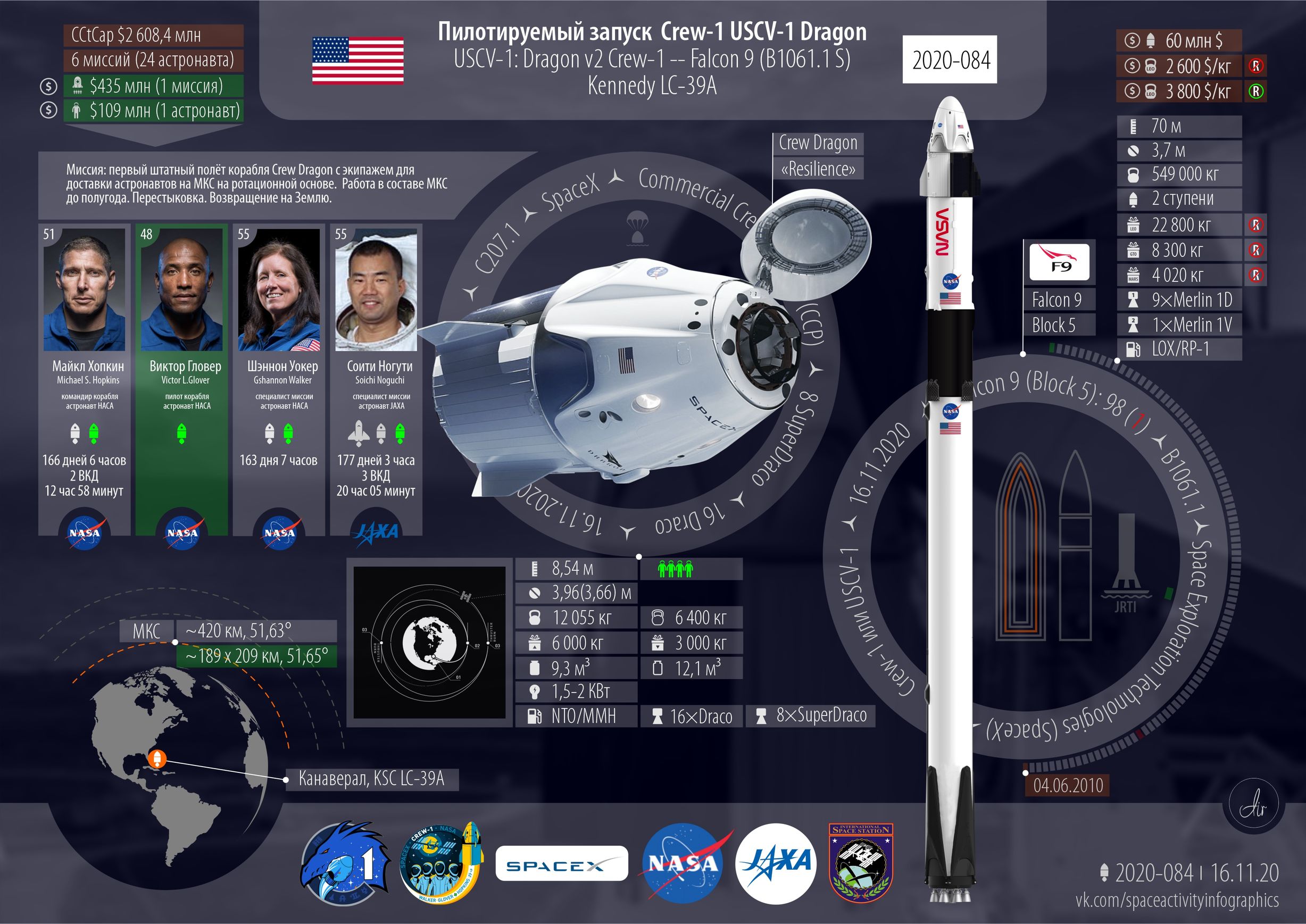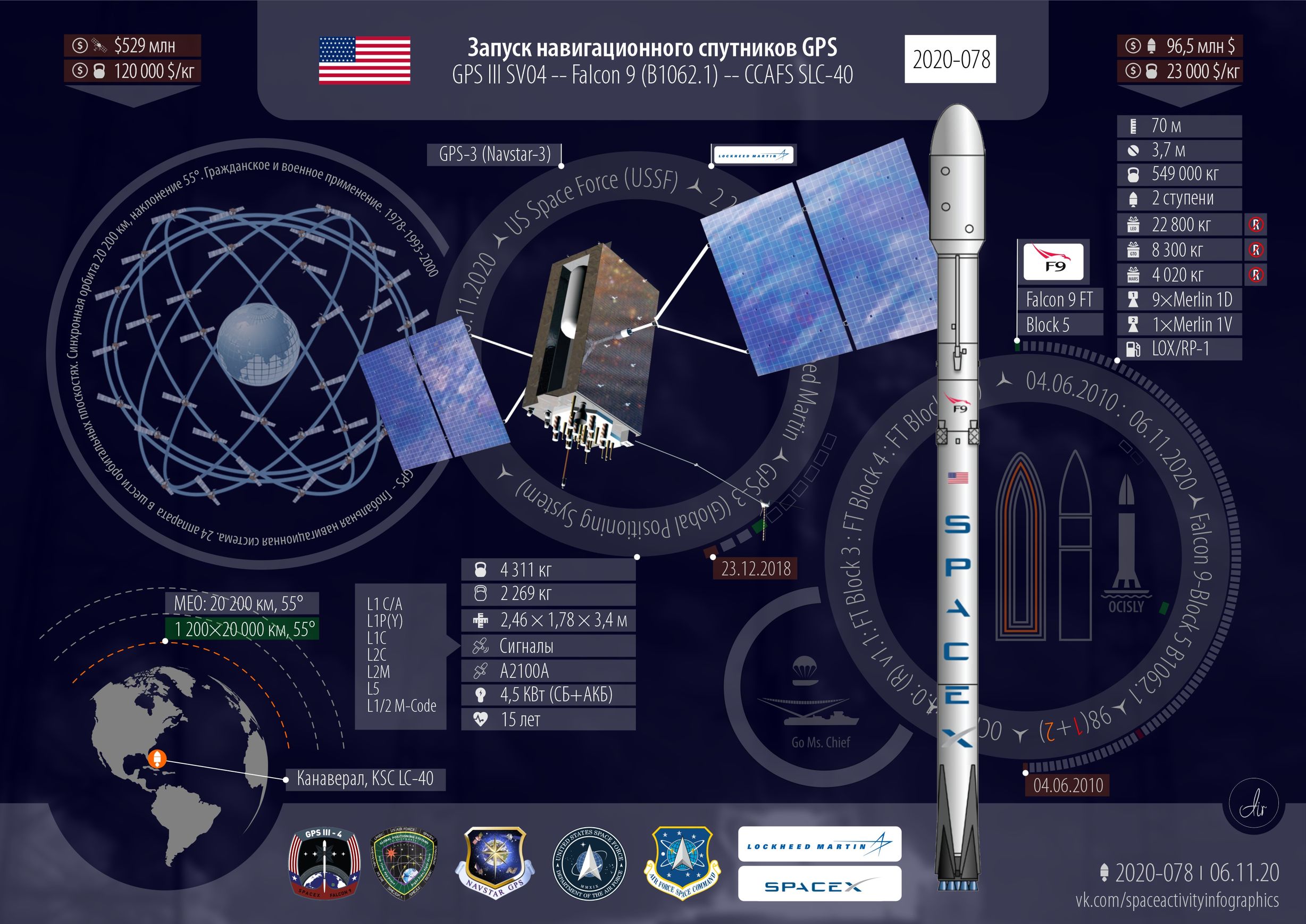 ■ США. Шесть запусков. Один Starlink от SpaceX. Первая штатная пилотируемая миссия для МКС Crew Dragon с четырьмя астронавтами. Спутник наблюдения за океаном и GPS III на Flacon 9. Мелкая ракетка от Rocket Lab. Atlas V от ULA с чем-то для разведки.