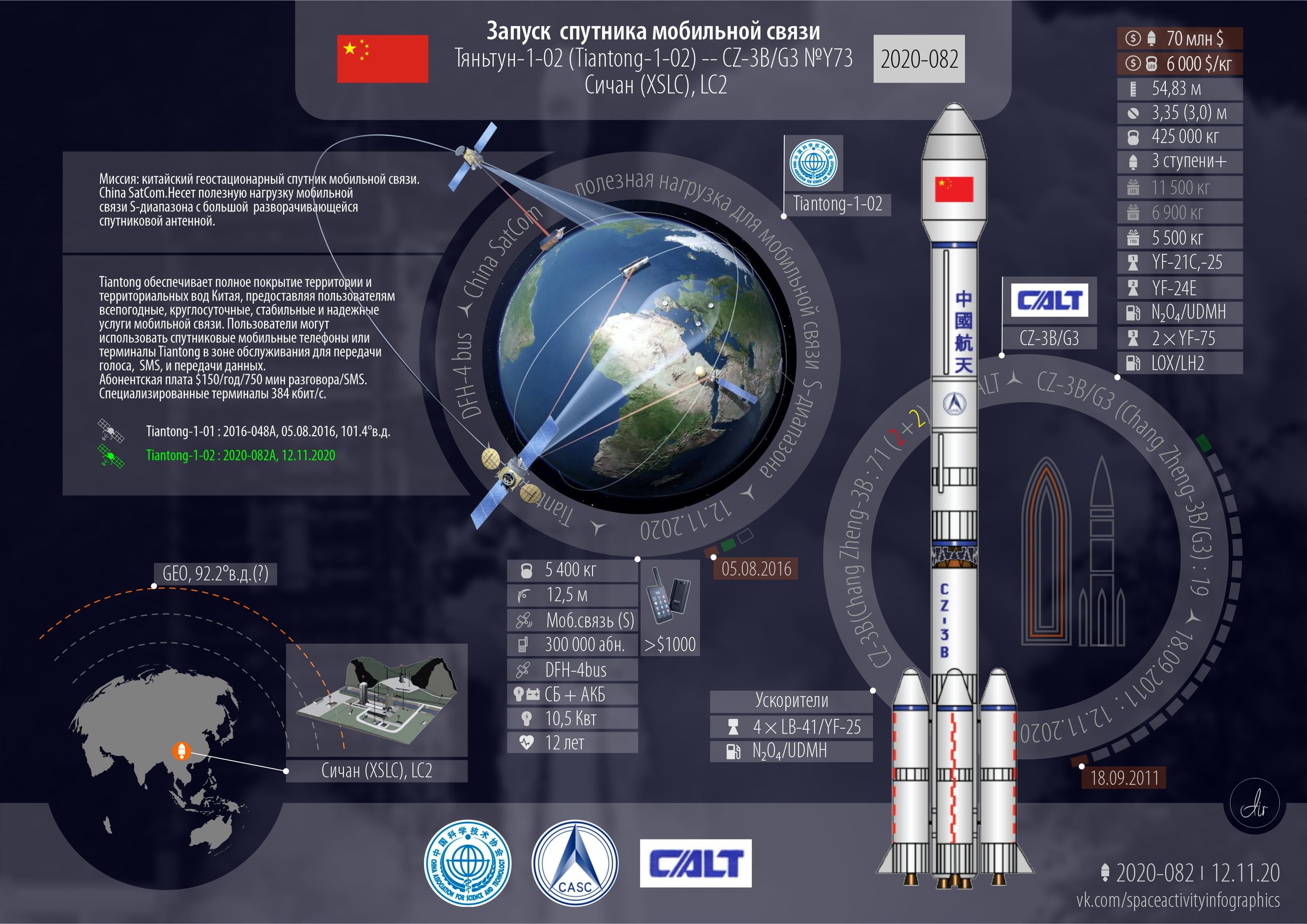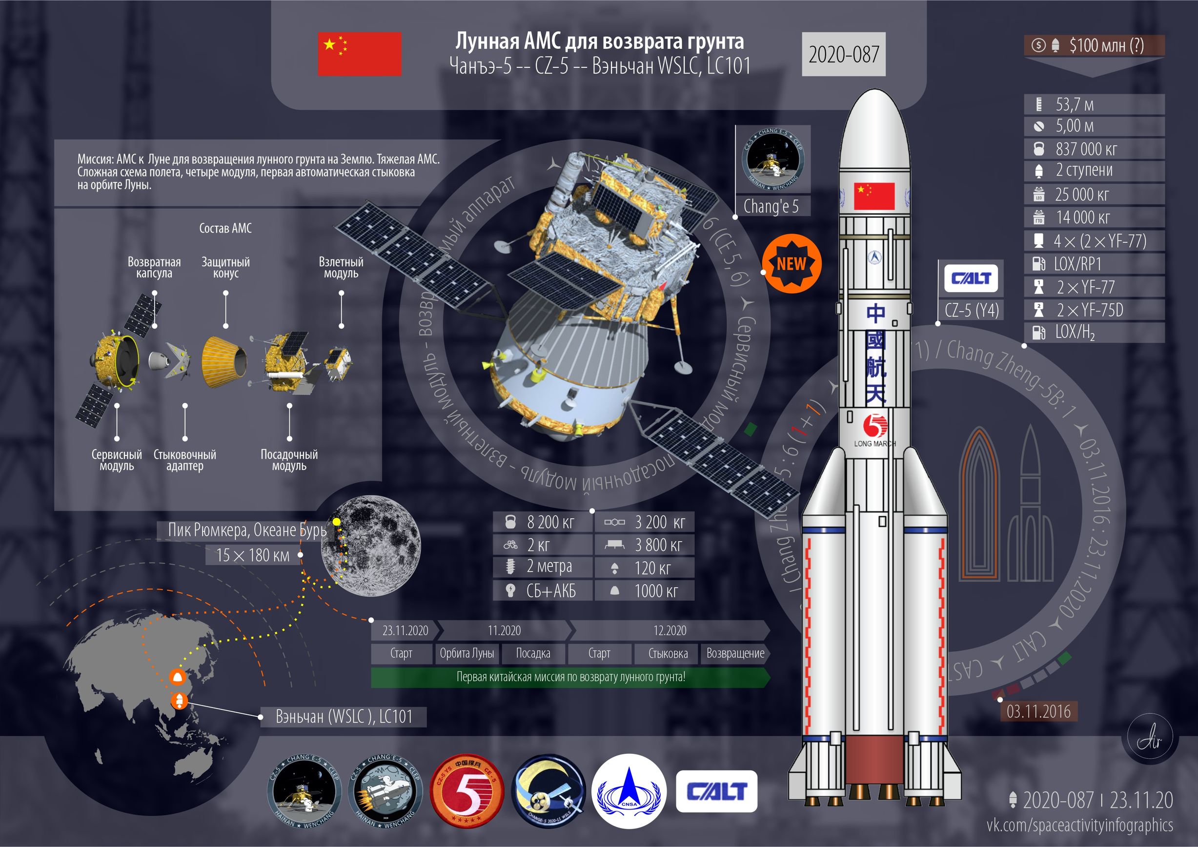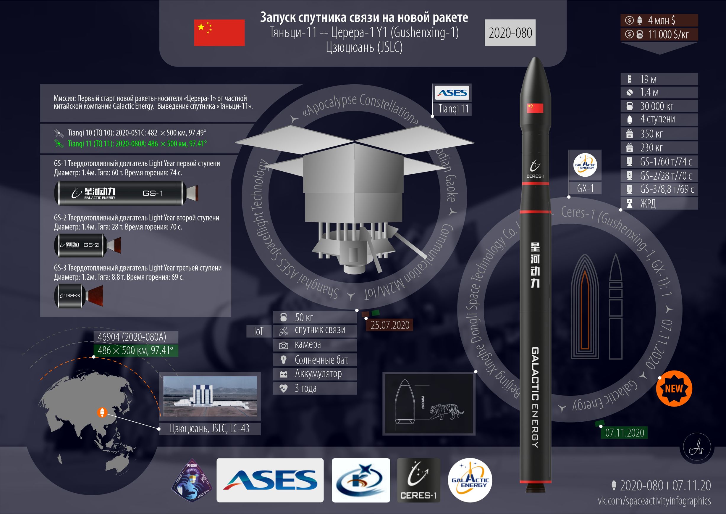 ■ Китай. Четыре запуска. Мелкие и большие. Одно из ожидаемых событий года — запуск АМС к Луне для забора и возврата грунта. Первый старт новой ракеты «Церера-1» от частной китайской компании Galactic Energy.