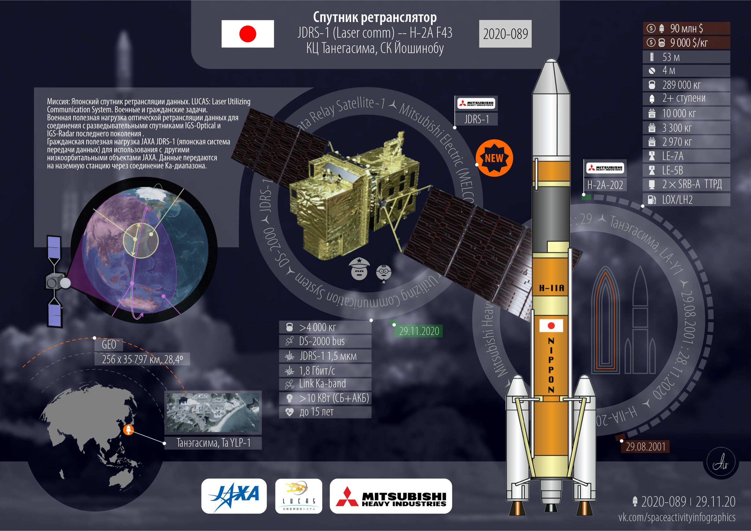 Япония. Спутник-ретранслятор для работы на геостационарной орбите.