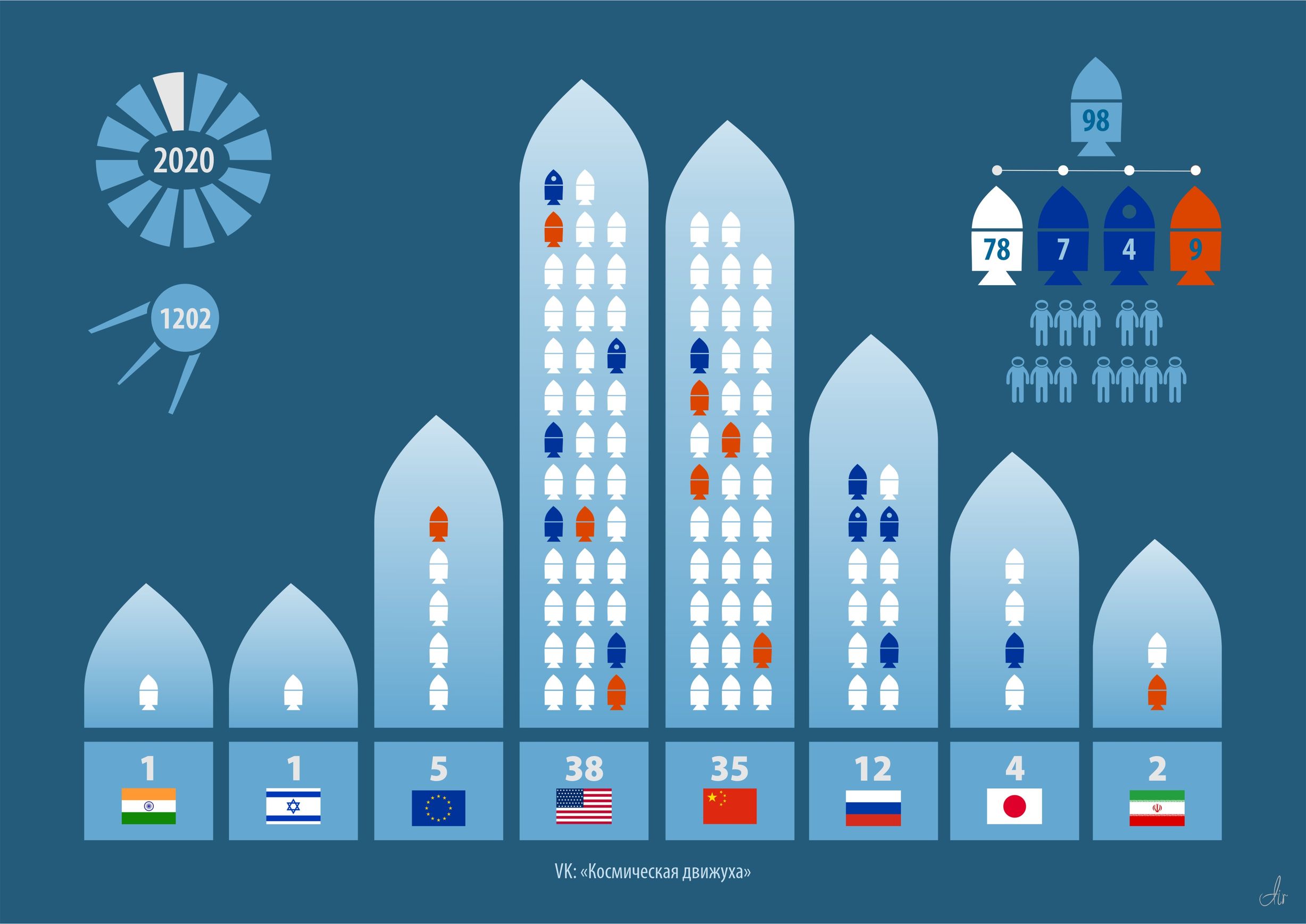 По моему пора выносить Спейсов в отдельную “колонку”. Они и там будут очень неплохо смотреться на втором месте после Китая, да ещё с двумя пилотируемыми полётами.
