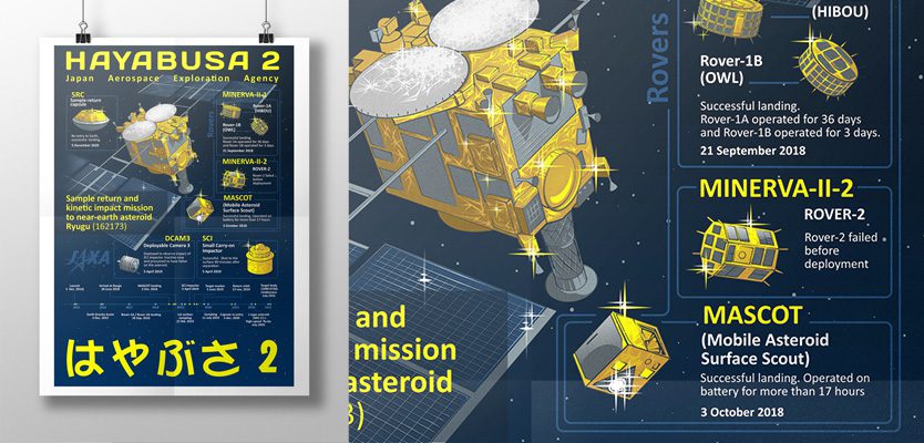 Если коротко — делаю постер/инфографику по миссии “Хаябуса-2”, но не уверен в точности некоторых моментов. Нужна консультация/правки/критика.