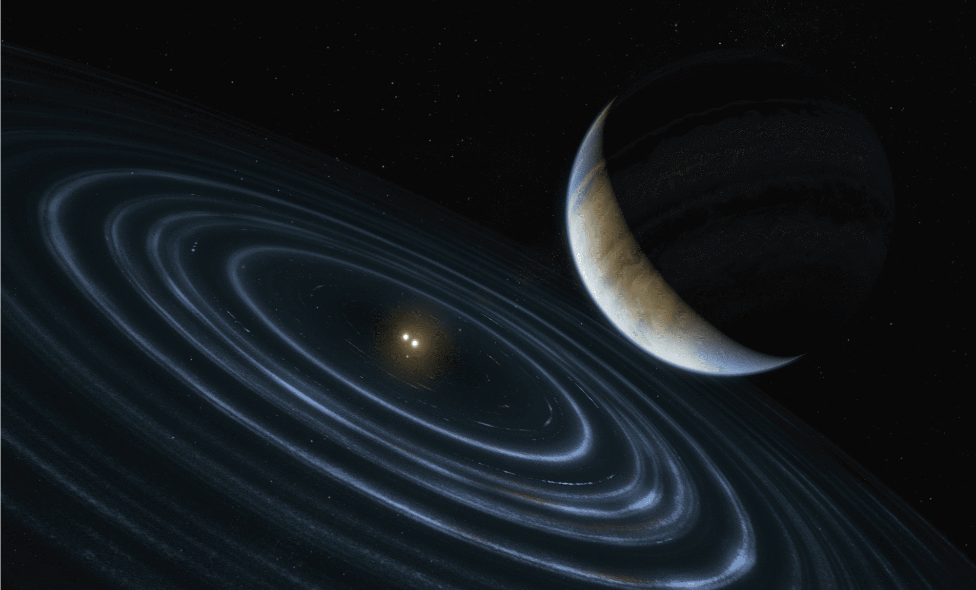 Десятого декабря в издании The Astronomical Journal было опубликовано любопытное открытие. Мэйджи Нгуен и Пол Калас из Калифорнийского университета в Бёркли совместно с Робертом Де Роза из Европейской южной обсерватории в Чили смогли пронаблюдать движение крупной планеты-гиганта у двойной звезды. Благодаря полученным данным астрономам удалось вычислить орбиту планеты: тут-то их и поджидал сюрприз. Но обо всём по порядку.