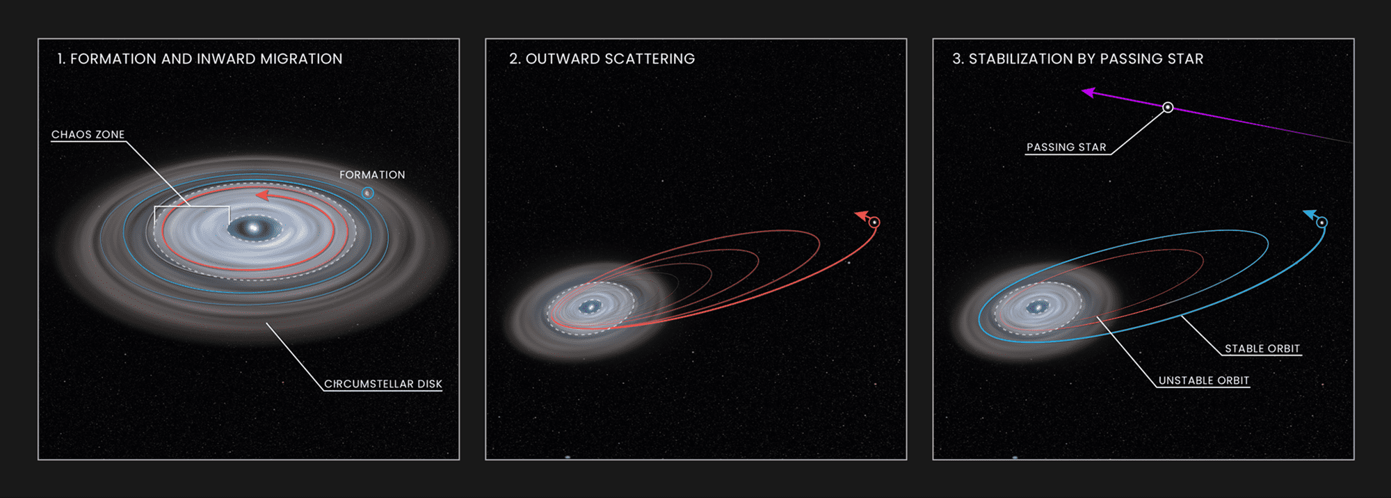 3) Случайно проходящая мимо звезда стабилизировала орбиту HD 106906 b и не позволила планете покинуть свою систему.