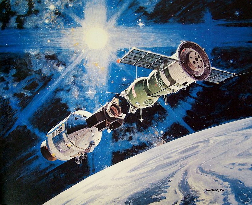 Представление художника о том, как будет выглядеть историческое событие. Нарисовано в 1974-м, за год до стыковки.