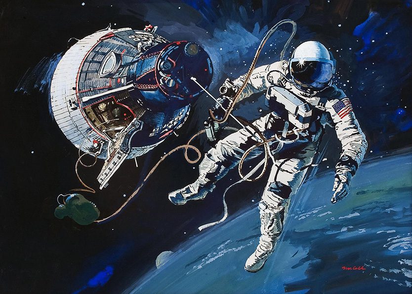 Обещанная огромная статья, много картинок. Рассказ об этом художнике будет интересен не только ценителям красивой картинки, но и интересующимся историей космонавтики. Под катом Роберт Мак-Колл, Олдрин, Азимов, Коллинз, Леонов, Брэдбери. А так же космическая программа США до 2000-х, “Союз-Аполлон”, катастрофа “Челленджера”, скандал с астронавтами лунной программы, пытавшимися срубить бабла на филателистах, стены музеев и исследовательских центров NASA.