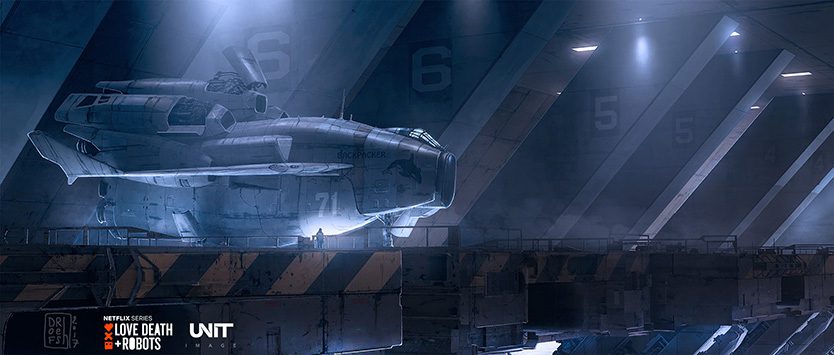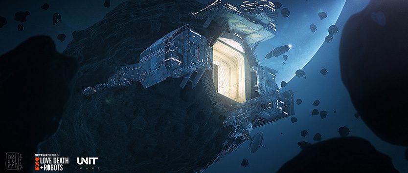 В 2019-м на Netflix вышел анимационный сериал-антология «Любовь. Смерть. Роботы» (страница сериала на Netflix). Если не смотрели советую, есть хорошие серии, есть и про космос. Например 7-я серия от студии Unit Image под названием Beyond the Aquila Rift (в русском переводе – «За Разломом Орла»).
