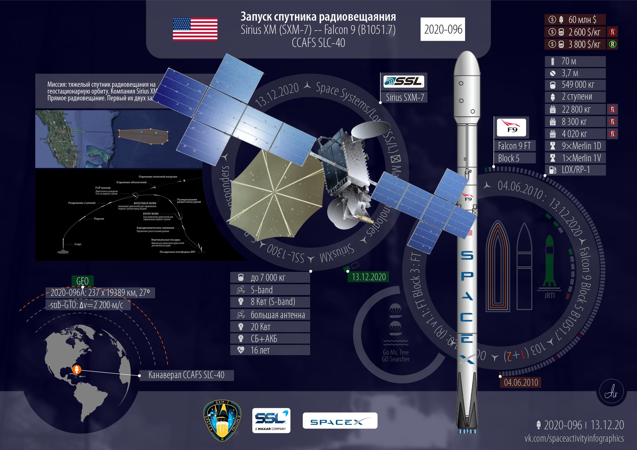 Hires Инфографика Falcon 9 Block 5 | Sirius SXM-7