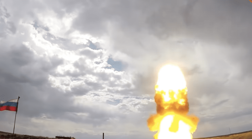 Испытание российской системы противоракетной обороны «Нудоль» 20 июля 2020 г. Фото: Armies Power / YouTube
