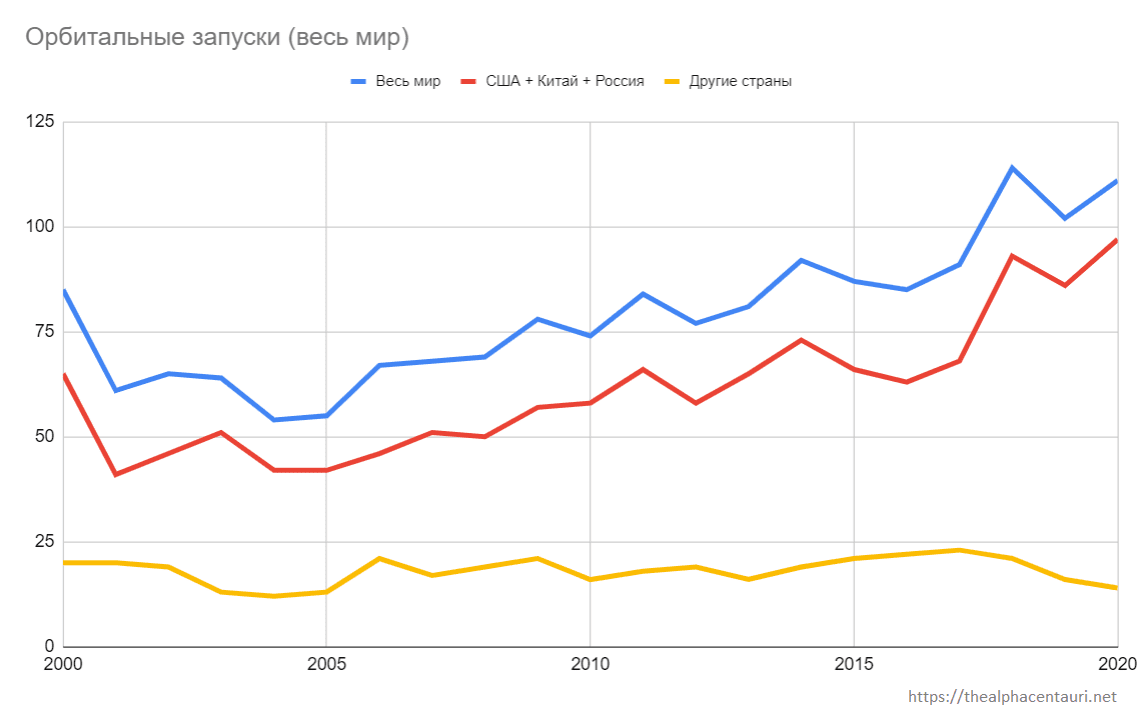 Тренд последних лет очевиден: запусков становится всё больше и больше (в среднем на 15 в год). Разберёмся, чья это заслуга.