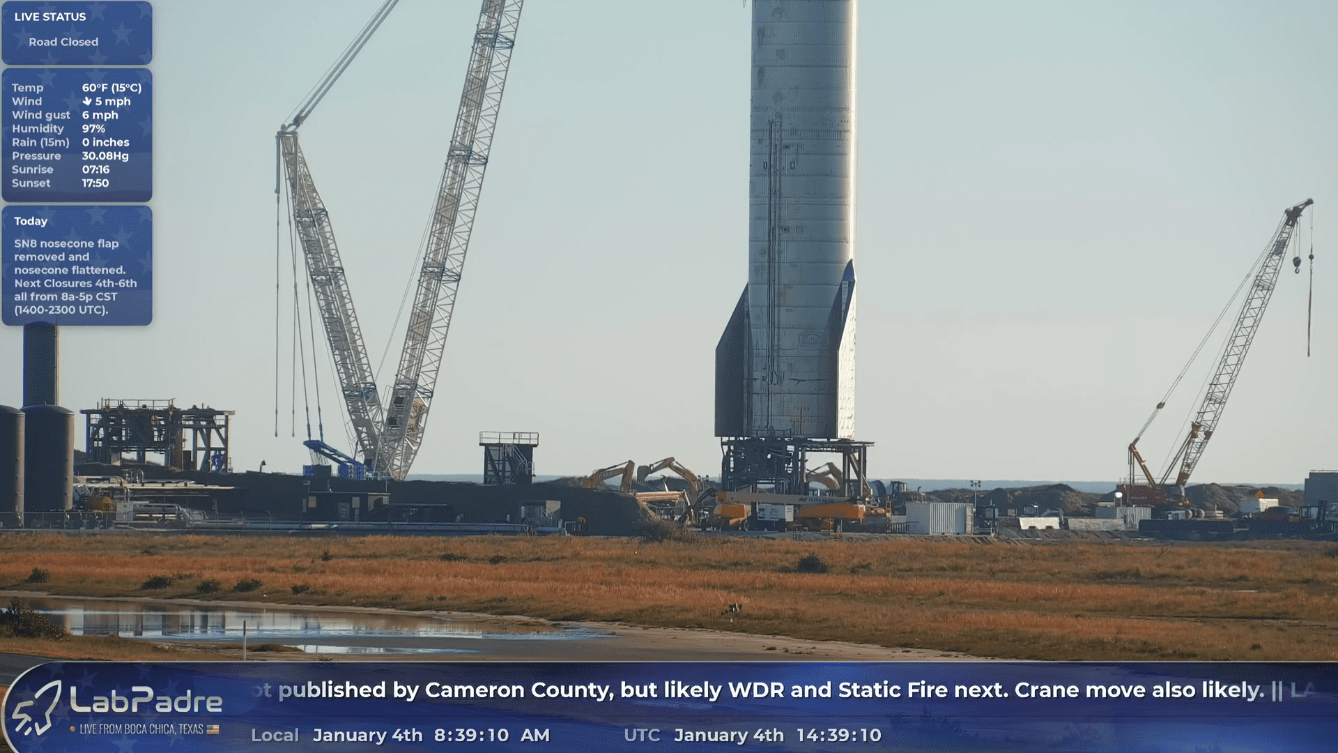 Прожиг сегодня вряд ли будет, скорее тест заправки или криотест. А перекрытия дороги пока нет, напротив надписи была бы галочка.