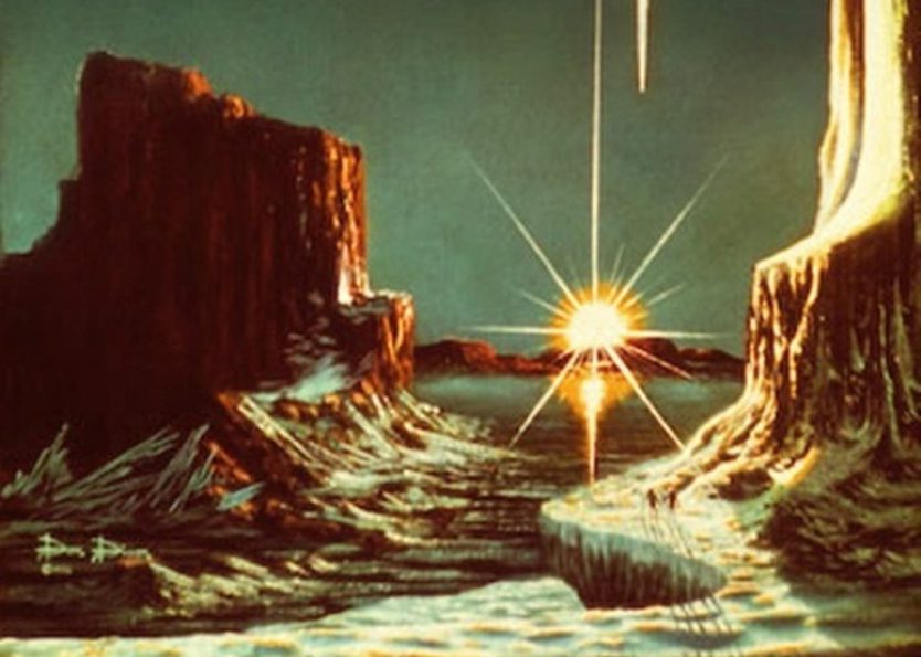 Иллюстрации Люсьена Рудо основаны на его представлениях о том, как будут выглядеть другие планеты, их пейзажи и вид на них из космоса и с их спутников. У него получались изображения, которые, как оказалось, достаточно достоверно отражали реальность.