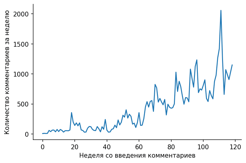 Корректнее было бы, наверное, написать “Неделя с момента введения комментариев”. Но мне лень перерисовывать график 🙂