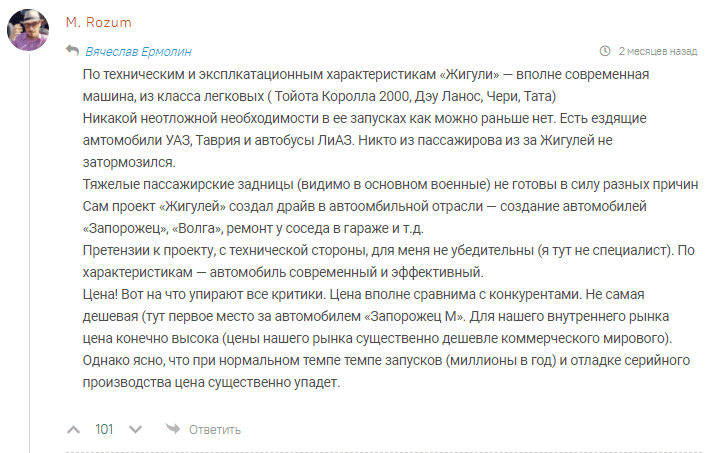 Самый залайканный комментарий принадлежит пользователю M.Rozum — он на 101 оценку в «плюсе». Огромный отрыв от следующего места, у которого рейтинг 60.