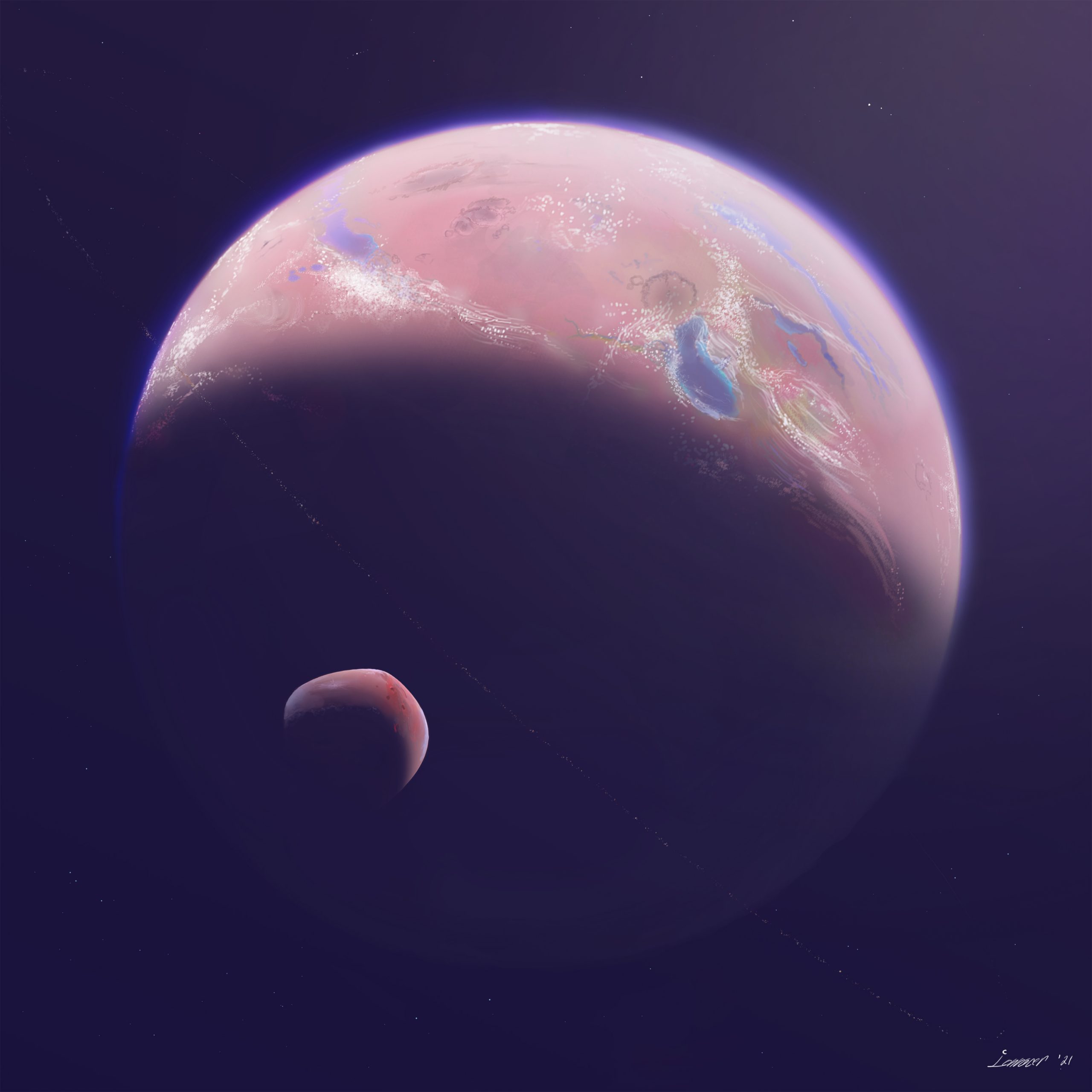 Изначально хотел нарисовать экзопланету земного типа, но добавив этот корабль, подумал, что лучше пусть будет Марс.