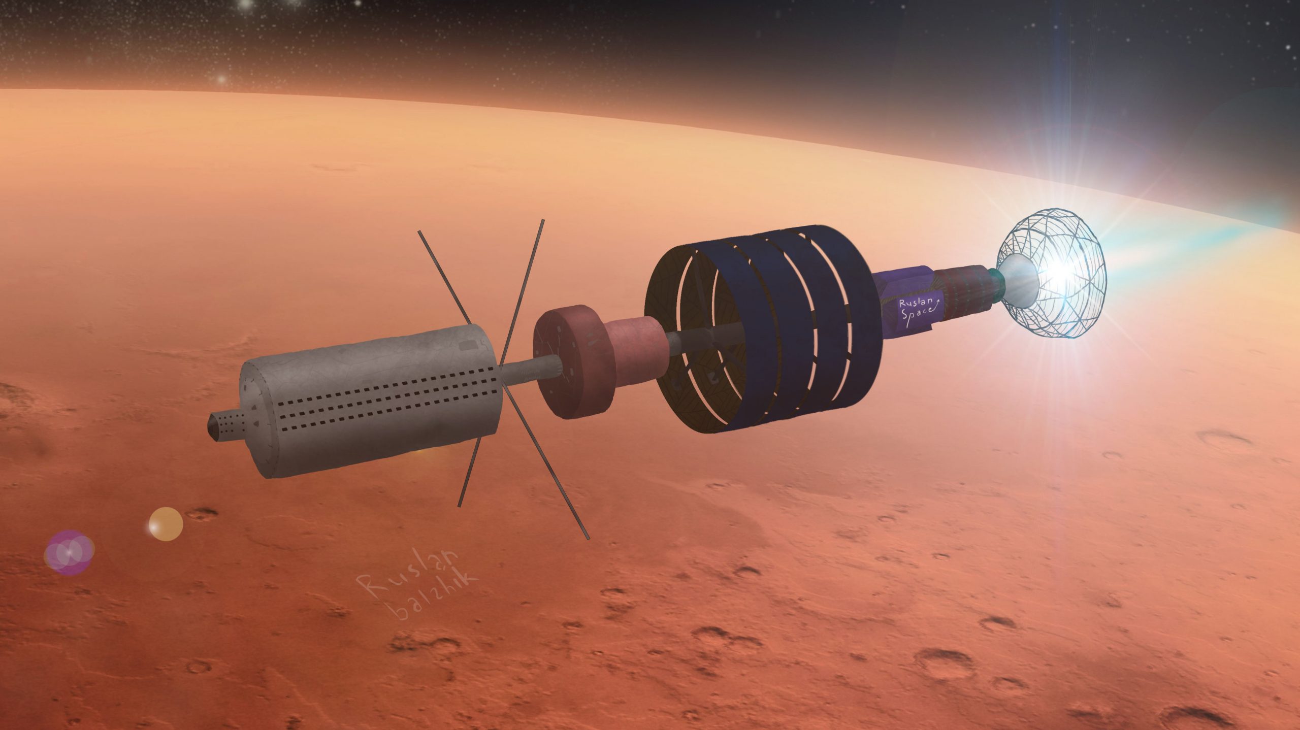 Этот космический корабль комфорт класса, построен компанией Ruslan Space в 2075 году. Постоянно и без перерывов курсирует между Землёй и Марсом, всего раз на Луну на техобслуживание прилетал. Рассчитан на 410 пассажиров, оборудован всеми высокотехнологичными устройствами, также есть: кинотеатр, 4 тренажёрных зала, кафе, бар, ресторан. Это всё позволит вам с комфортом провести время, пока вы летите на отпуск, в гости или по делам на Марс
