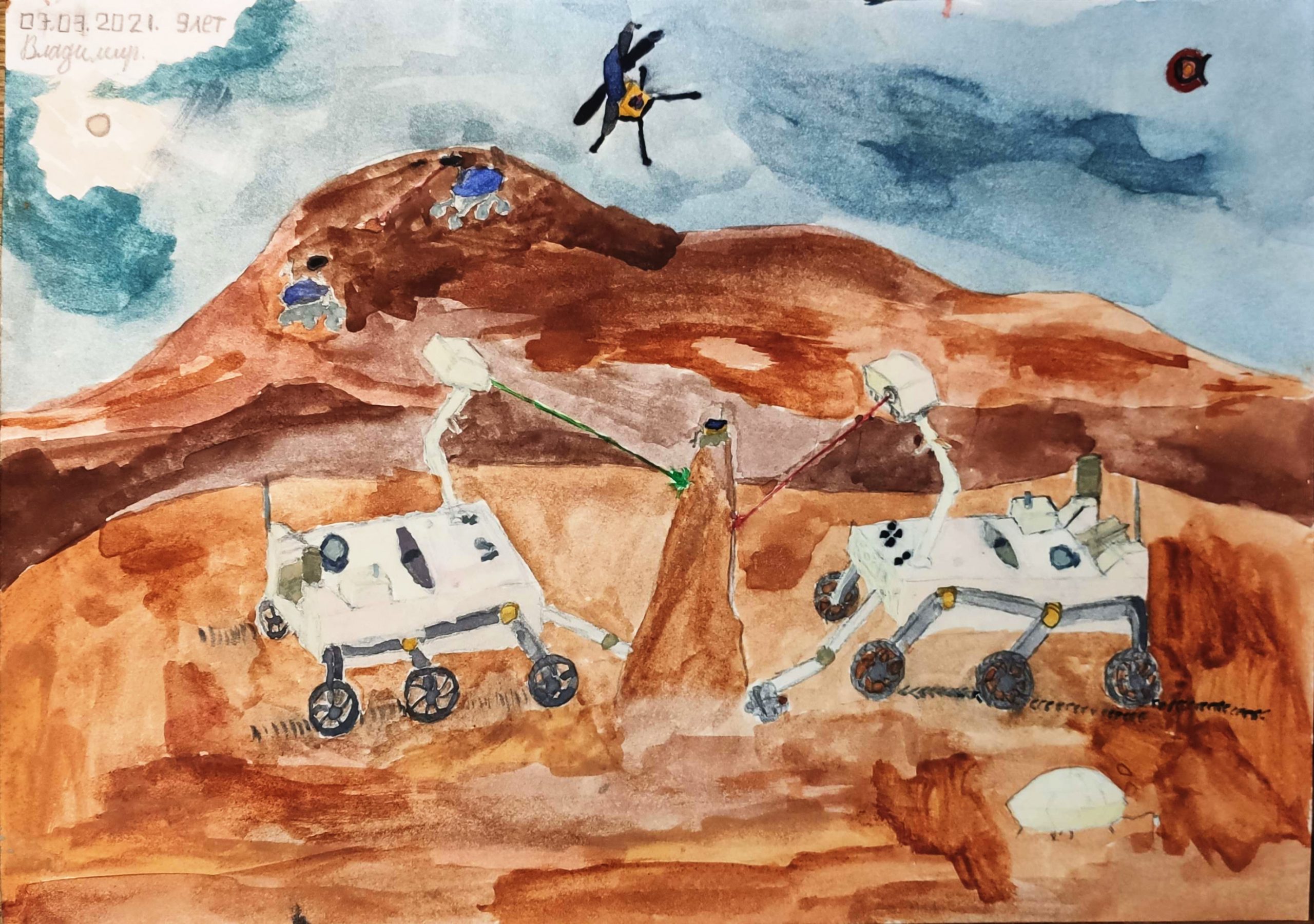 Меня вдохновило недавнее успешное приземление и начало работы марсохода Perseverance и другие космические события, за которыми я слежу вместе со своим папой, благодаря Alpha Centauri !