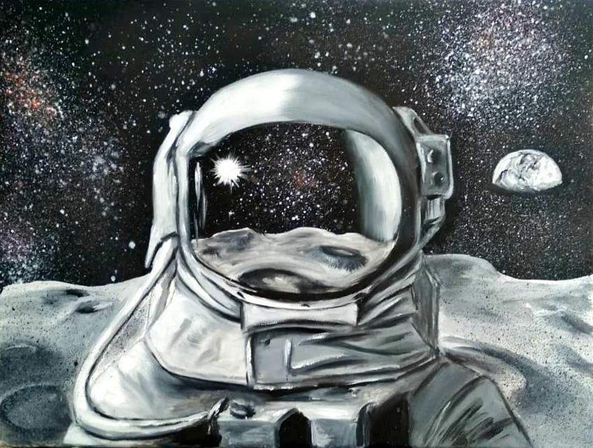 Жена сделала подарок любителям заваривать гидразин по утрам и написала картину маслом под девиз канала: One small step for man, one giant leap for mankind. Конечно, звёзд на селфи Армстронга многовато, но тут работает сноска “в представлении художника” 🙂
