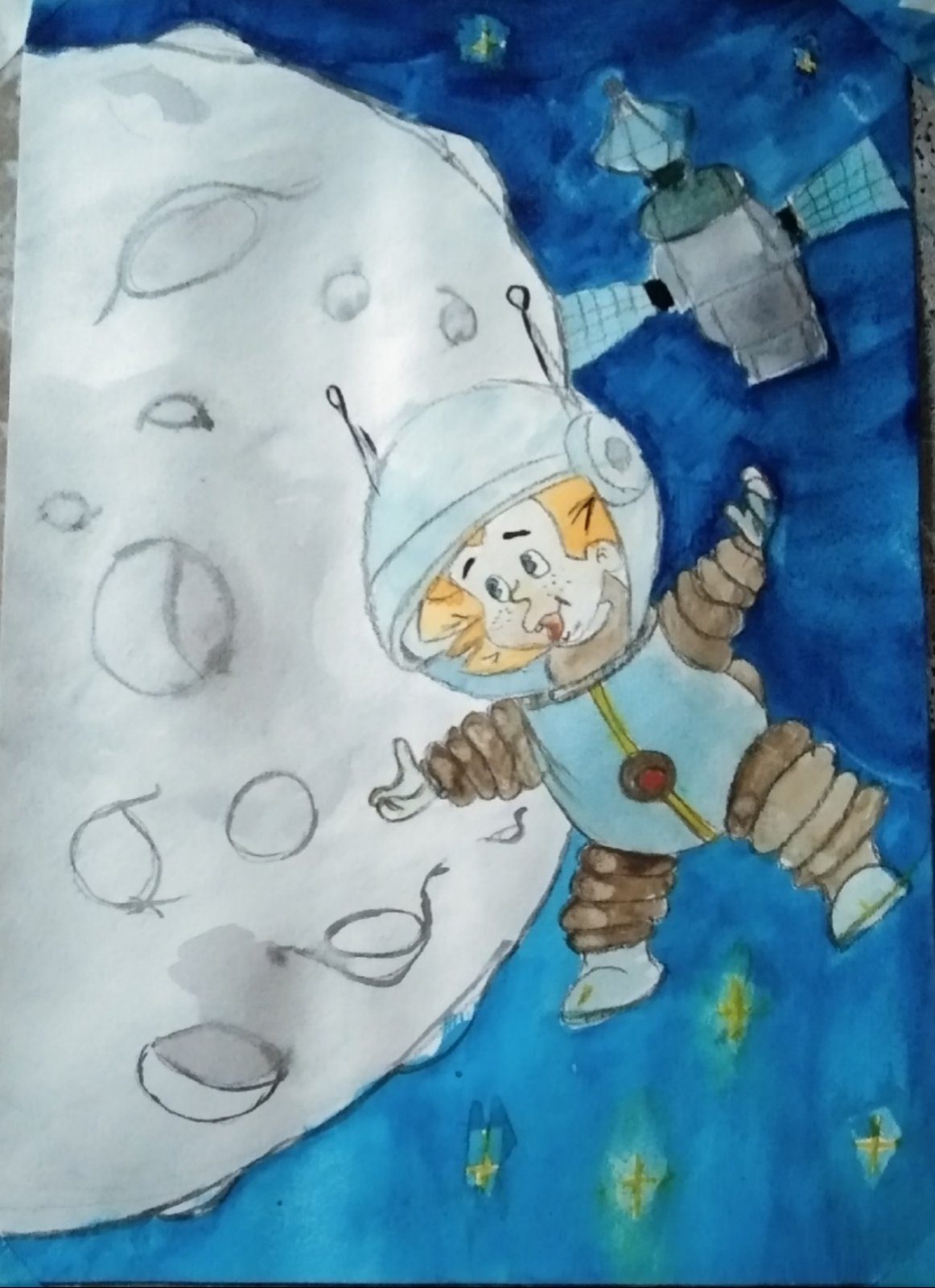 Конкурс.Космический тур. Незнайка на Луне Виктория Литвинцева Бер 16, 2021 Галереї 208 10 Share Telegram Twitter/X Facebook WhatsApp Copy Link Незнайку на луну не брали.,поэтому ночью перед полетом забрался в ракету. Нажав нечаянно на кнопку старт,улетел. Когда прилетел на Луну,одел скафандр,и пошел исследовать. Незнайка провалился в тоннель и оказался на Луне. Александра Грек,13 лет