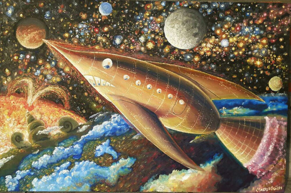 Это картина не на конкурс так как я уже предоставил для него работу, но раз тут такой вернисаж пользуюсь возможностью показать свое новое творение. Люблю иногда нарисовать что то для души без каких либо претензий на что-то, просто что в голову прийдет. А за одно поэкспериментировать, чтобы потом в более серьезных работах знать как и что. К слову это не ракета а ракетоплан. Вдохновили меня на это множество самых разных работ, присланных на конкурс и естественно успехи многоразовых ракет. Все жду когда появятся одноступенчатые, очень хочу их увидеть. Холст, масло 60х90