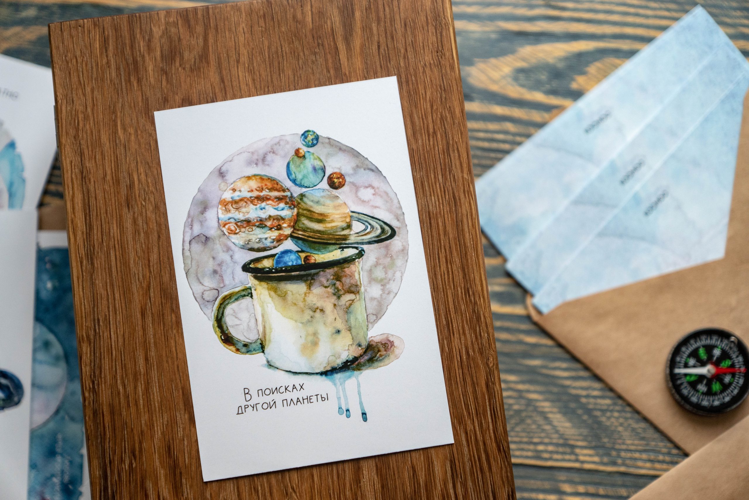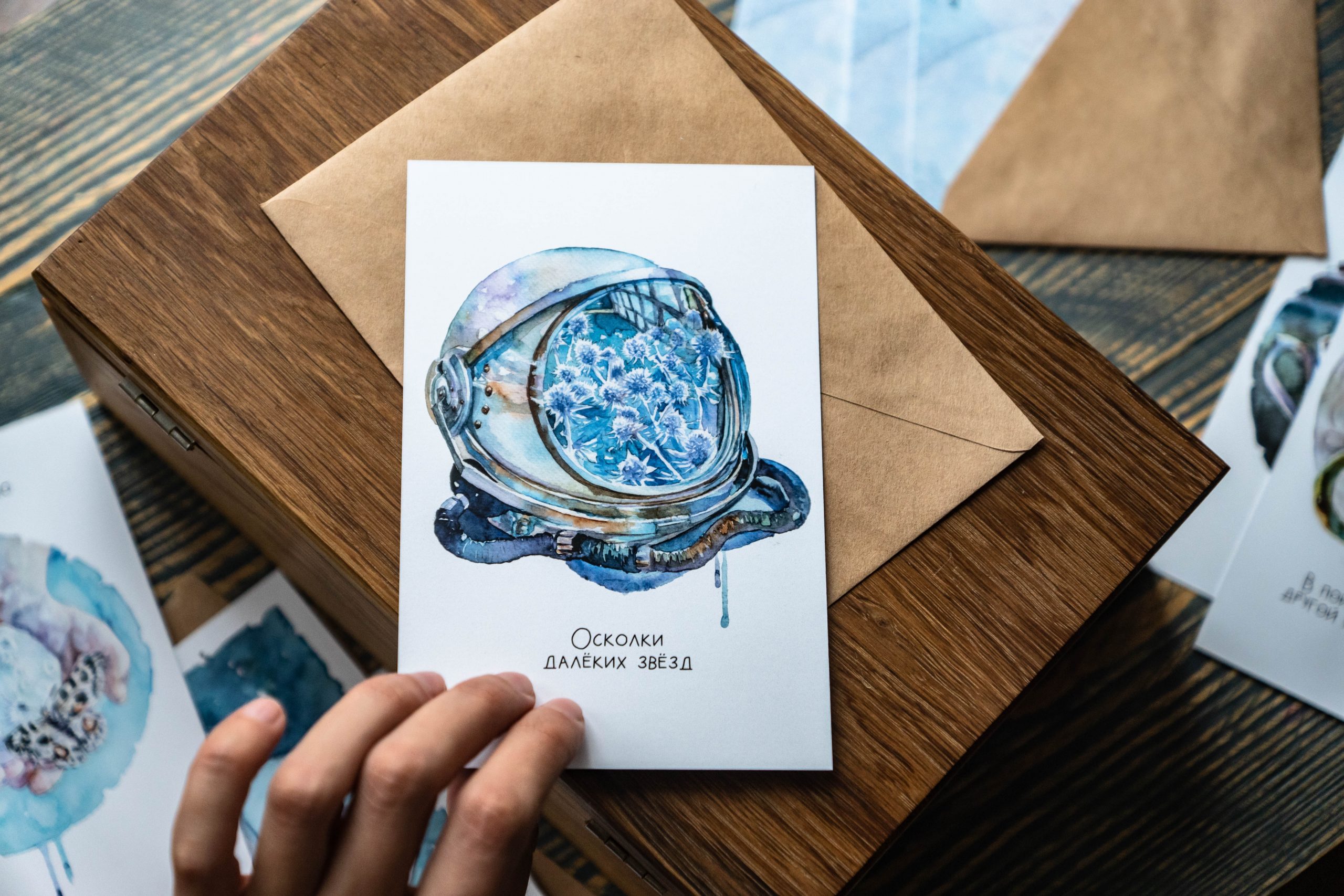 Создала небольшой набор почтовых открыток. Каждая иллюстрация написана акварелью, цифровые сканы напечатаны на дизайнерском картоне в типографии, в общем — полноценные открытки, которые можно отправлять в кругосветку. Сейчас сижу и раздумываю над иллюстрациями к следующей коллекции.