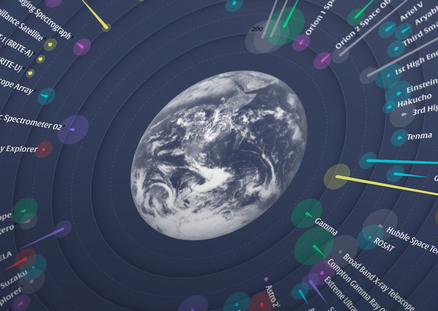 Тут собрана информация о космических телескопах запущенных за шестьдесят лет. Орбита, общие параметры, диапазон длин волн на которых работал телескоп.