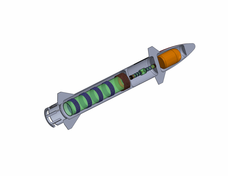 При такой скорости необходима и быстрая коммутация энергии в обмотках, ведь при прохождении витка с током мимо обмотки, направление тока в последней должна меняться на противоположную. Сначала обмотка притягивает виток, потом – отталкивает. Это упрощенная схема, ускоряющие обмотки можно располагать и на центральном штоке, не показанном на рисунке.
