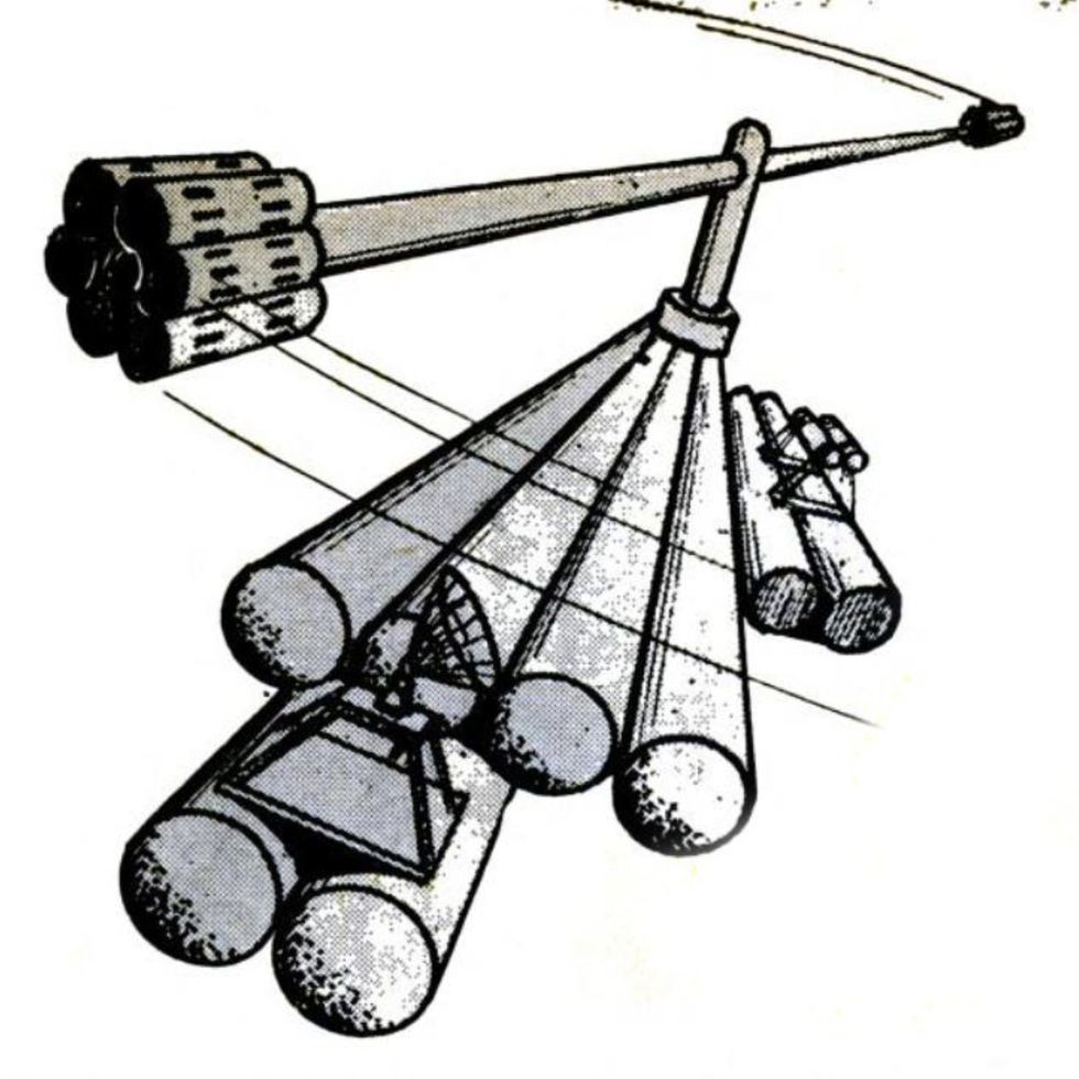 Концепция советской ракеты-носителя с ускорителями, которые могут возвращаться на землю. Корабль для возвращения находиться на носу ракеты-носителя.