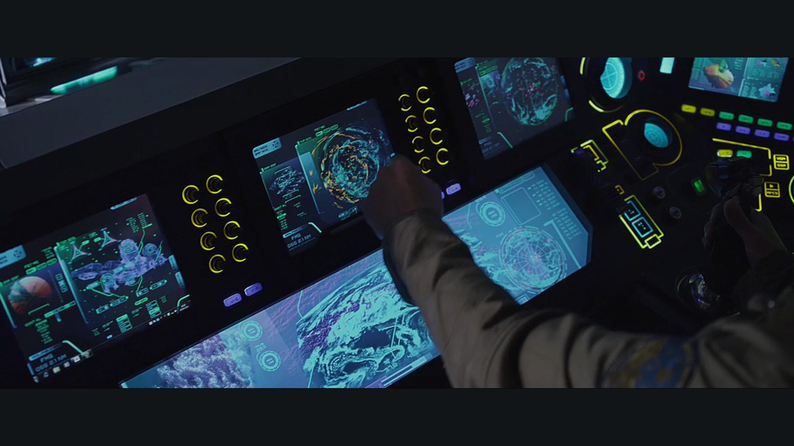 Действительно, о какой конкретике можно говорить, когда интерфейсы предназначены для техники, которая так далека от нашего нынешнего уровня, что неотличима от магии. Но экраны нужны. И много, ведь только на них можно изобразить что-то абстрактное.