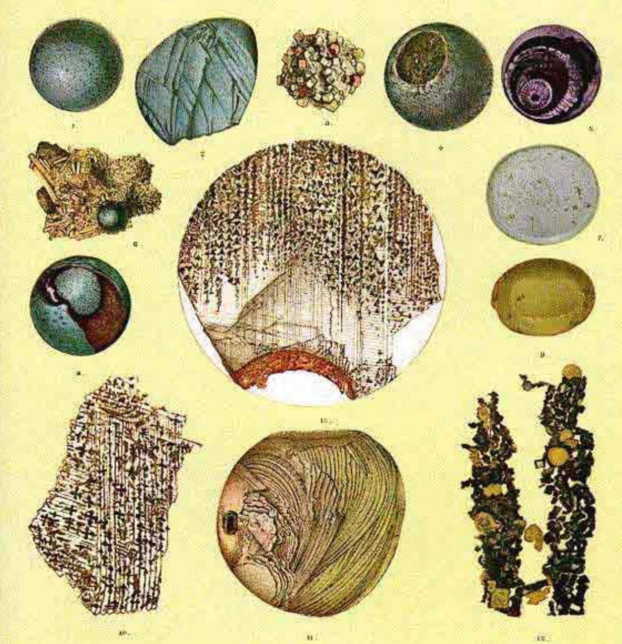 Микрометеориты весьма разнообразны: часть выглядит как цветные стеклянные бусины, как на фото, часть — как почти металлические черные шарики. Это связано с различным химическим составом, степенью плавления изначального вещества и «жизненным путем» микрометеорита — факторами, на которых и основана их научная классификация. Так как микрометеориты — это те же метеориты, то понятно, что итоговый вид бусины будет зависеть от того, из осколка какого метеорита — каменного, железного или железокаменного — она образовалась. Так, в более чёрных магнитных сферулах железа может быть более половины (железные, железо-каменные), а в зелёных стеклянных шариках будет преобладать кремний и кислород (каменные).