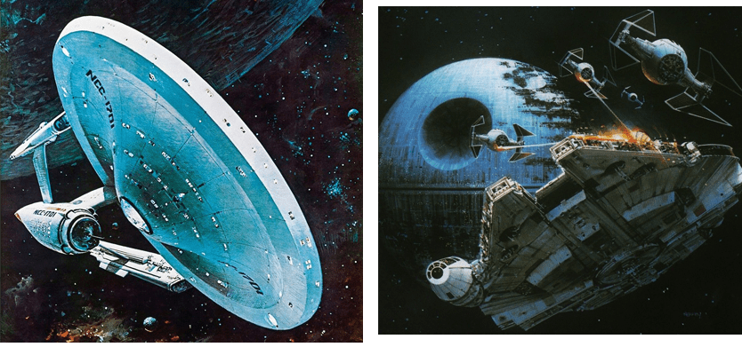 Как нельзя обойти NASA Art Program, так и нельзя пройти мимо двух величайших фантастических киновселенных — “Стартрек” и “Звёздные войны”. Для них Джон Берки делал иллюстрации.