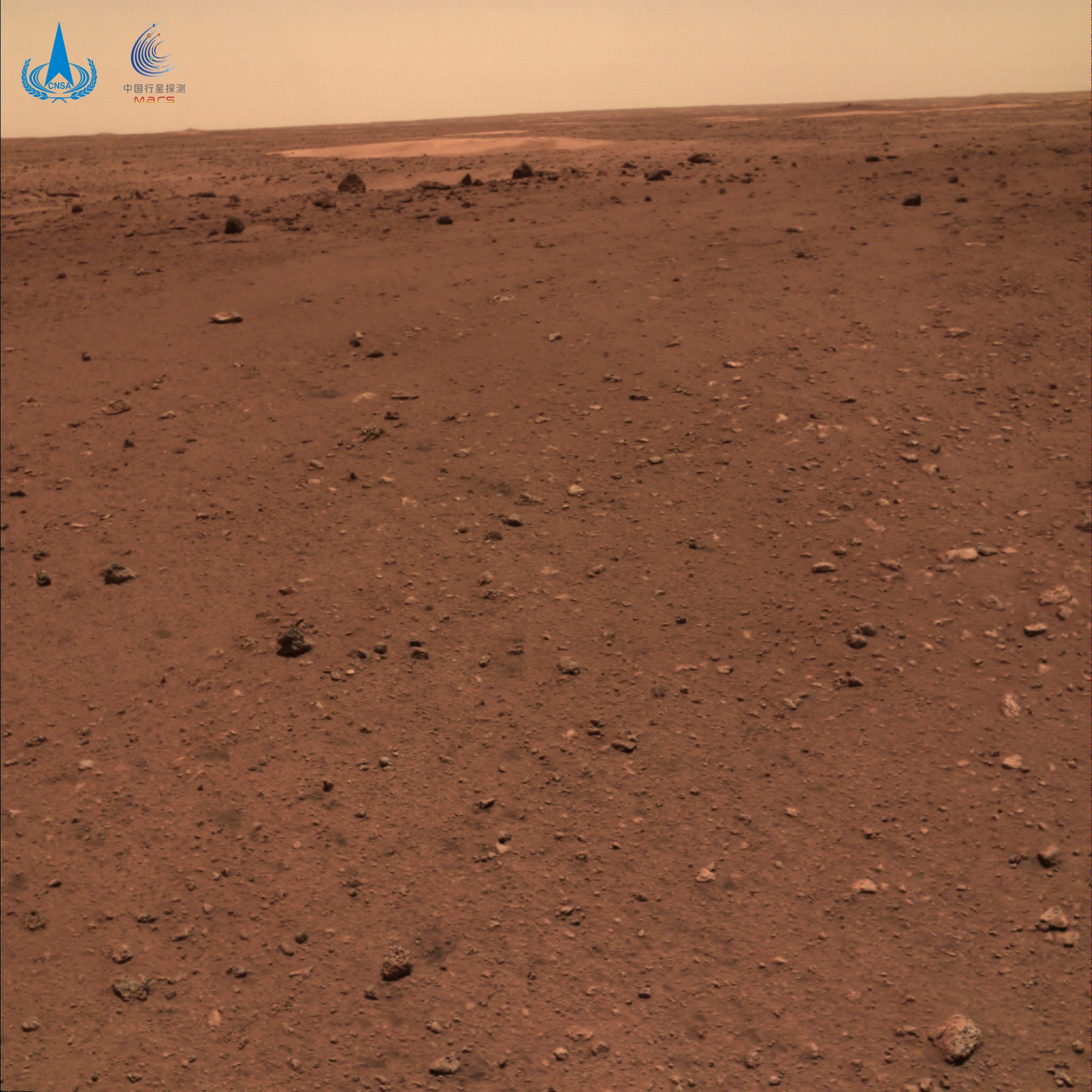 Камеры “Чжужуна” сделали три снимка, на которых показана посадочная платформа марсохода, а также окружающая среда на месте высадки. Другой снимок был снят камерой, развернутой отдельно на поверхности Марса. На ней показаны марсоход и посадочная платформа вместе.