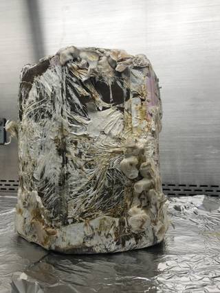 Этот странно выглядящий предмет мебели представляет собой табурет, выращенный с помощью грибов в течение нескольких недель. Учёные надеются, используя эту «мико-архитектуру», в конечном итоге вырастить таким образом целые космические среды обитания.