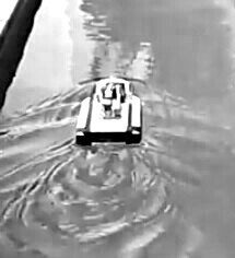 В следующем видео, хотя и скорость модели невелика, благодаря специальному мусору в воде, можно увидеть что она движется с интервалами, которые не совпадают с частотой волн. Это говорит о том, что импульс ей передается не отдельными волнами, а их спадами и подъемами, которые могут двигаться быстрее самих волн. Перенеся это на пространство-время, мы можем предположить, что за кораблем будут чередоваться области сжатого и растянутого пространства, в котором  волны поочередно будут догонять его, сообщая импульс, и отставать.