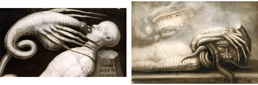 Гигер взялся за работу, и достаточно быстро прислал два с лишним десятка картин с адаптацией своих биомеханоидов под фильм. Однако выяснилось, что макетчики и художники-исполнители не могут в полной мере передать придуманных Гигером чудищ в объёме: получается как то не очень. К работе пришлось привлекать самого художника.