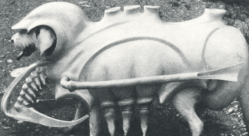 Гигер был не первым кого привлекли для создания монстра для фильма. Вот, к примеру, ранний вариант от Рона Кобба (статья о нем есть в серии под номером 9) — выглядит скорее потешно, чем устрашающе. В дальнейшем Кобб поработает и над «Чужим», и над «Чужими», но, справедливости ради, у него отлично получается техника и архитектура. А вот персонажи не его конёк.